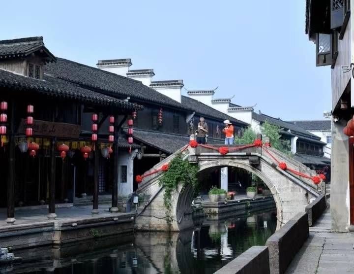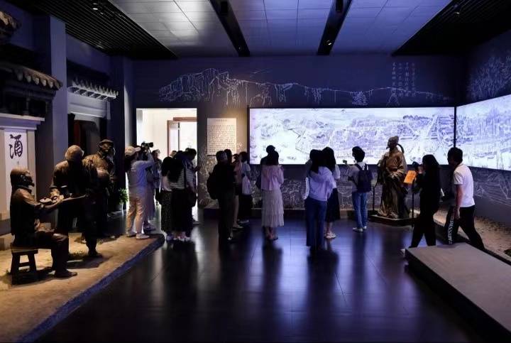在光影艺术馆,数字技术手段让传统文化符号活起来,给采访团成员带来了一场既有科技趣味又有文化内涵的文化沉浸式体验。踏在黄酒小镇的青石板路上,小桥流水人家的景致构成了一幅淡雅的水墨画,吸引众人纷纷拿出手机记录风景,体会江南水乡的“从前慢”。