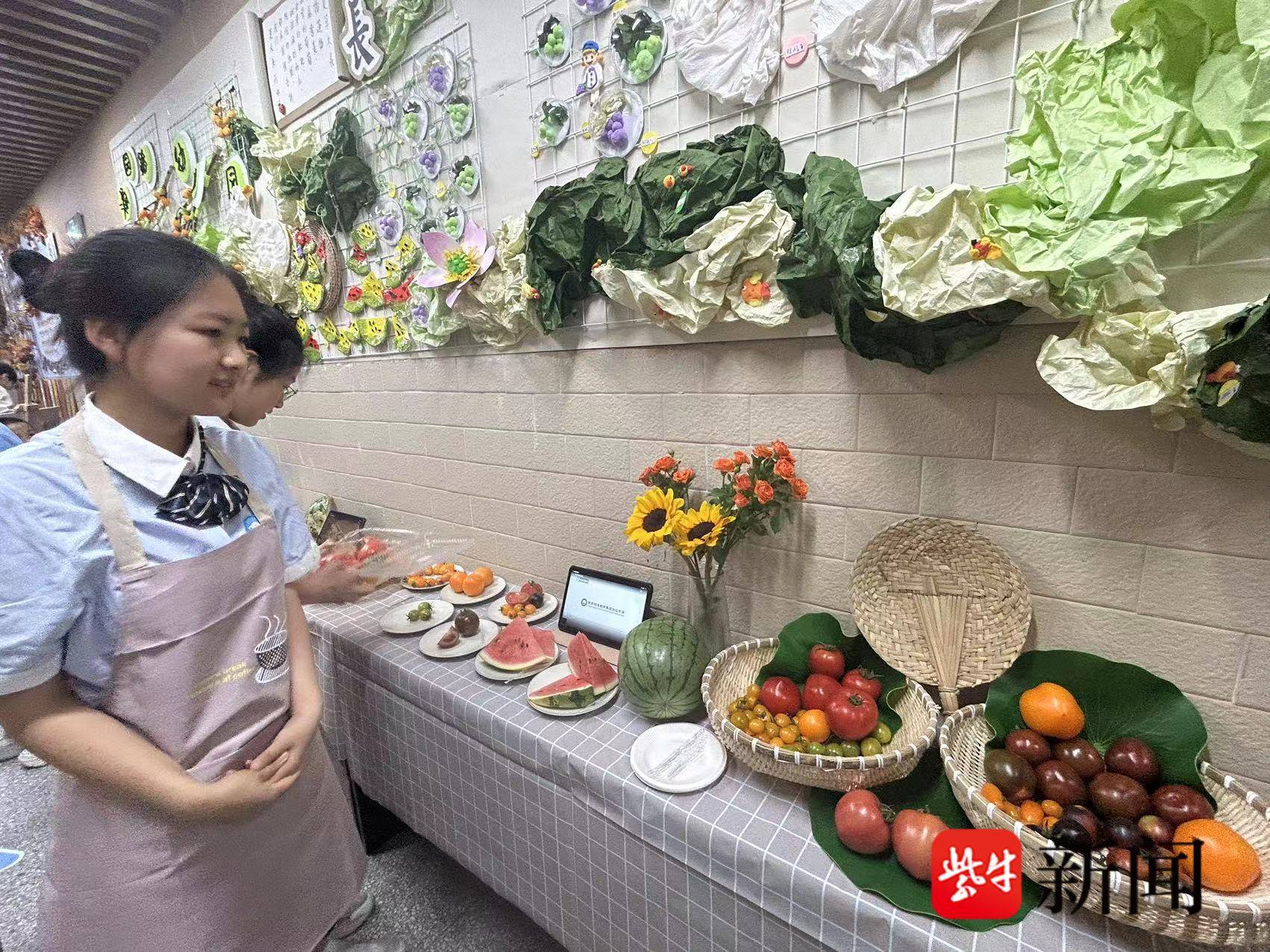 “这是我们学校学生亲手种的番茄,这个叫花生果,这个叫小黑,这个是大黑,这个叫‘梦想青甜’,别看它外表很青,其实它成熟了,口感清甜,这个叫‘931’,有‘保时捷’的别称,这个叫粉红1号……”现场,明道教育集团沿江中学的一位同学介绍起番茄来头头是道,没想到小小的番茄竟然有这么多种品种,形状和颜色各不相同,尝一口,口感都非常好。“我们有校内探究中心和校外探究中心,这些瓜果都是用营养液来种植的,不需要土壤,现代农业技术种植出来的瓜果味道很不错噢。”