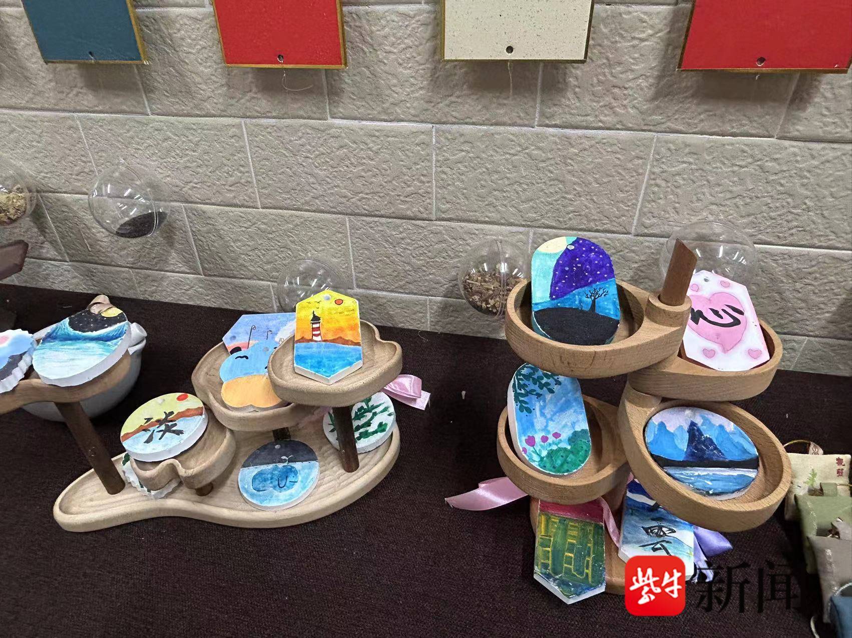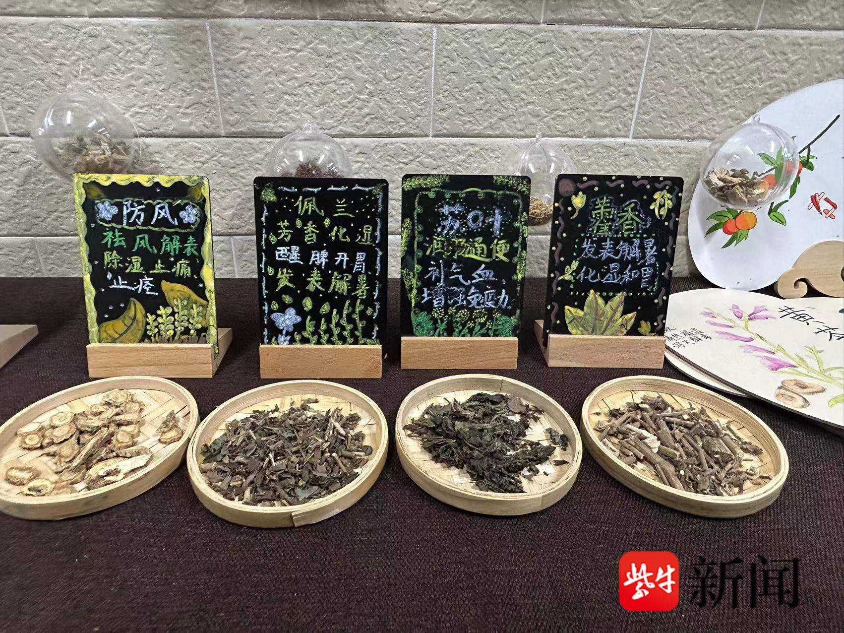 南京市江北新区高新实验小学把中医药和劳动教育相结合,学校副校长黄蓉说:“我们在学校有一个百草园种植基地,也有百草园劳动空间。我们又位于医药谷,里面有很多医药公司,我们跟他们有所合作。这边有秋梨膏、香薰石膏、中草药香囊,还有香薰的精油,都是孩子们的劳动成果。”