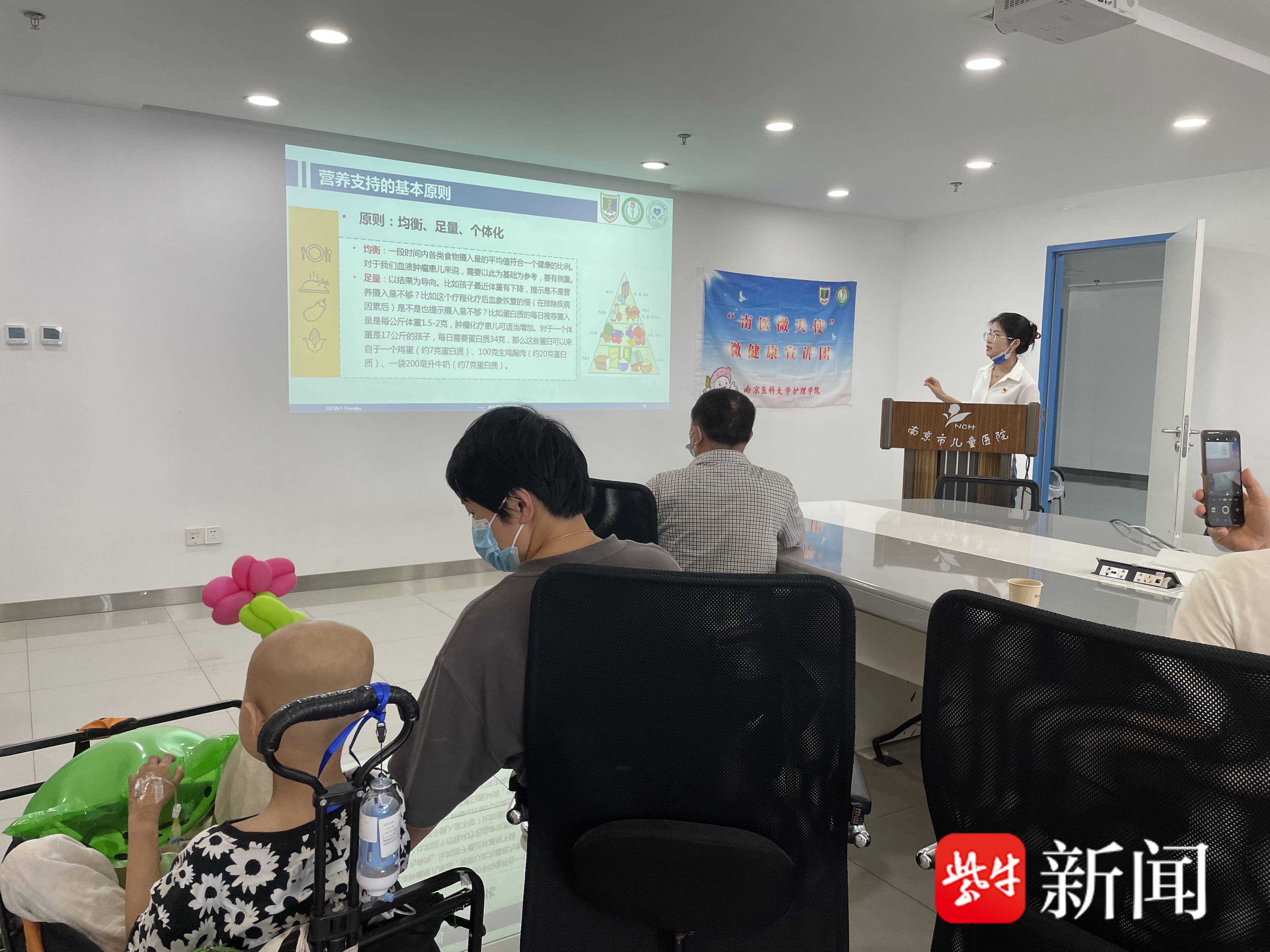 活动中,南医大护理学院本科生安宁疗护志愿服务团队的同学们陪伴血液肿瘤患儿吃蛋糕、做游戏、做手工,“南医微天使”研究生微健康宣讲团的同学们为患儿家长带去“血液肿瘤患儿的居家护理”“血液肿瘤患儿的照顾者心理疏导”两场讲座。