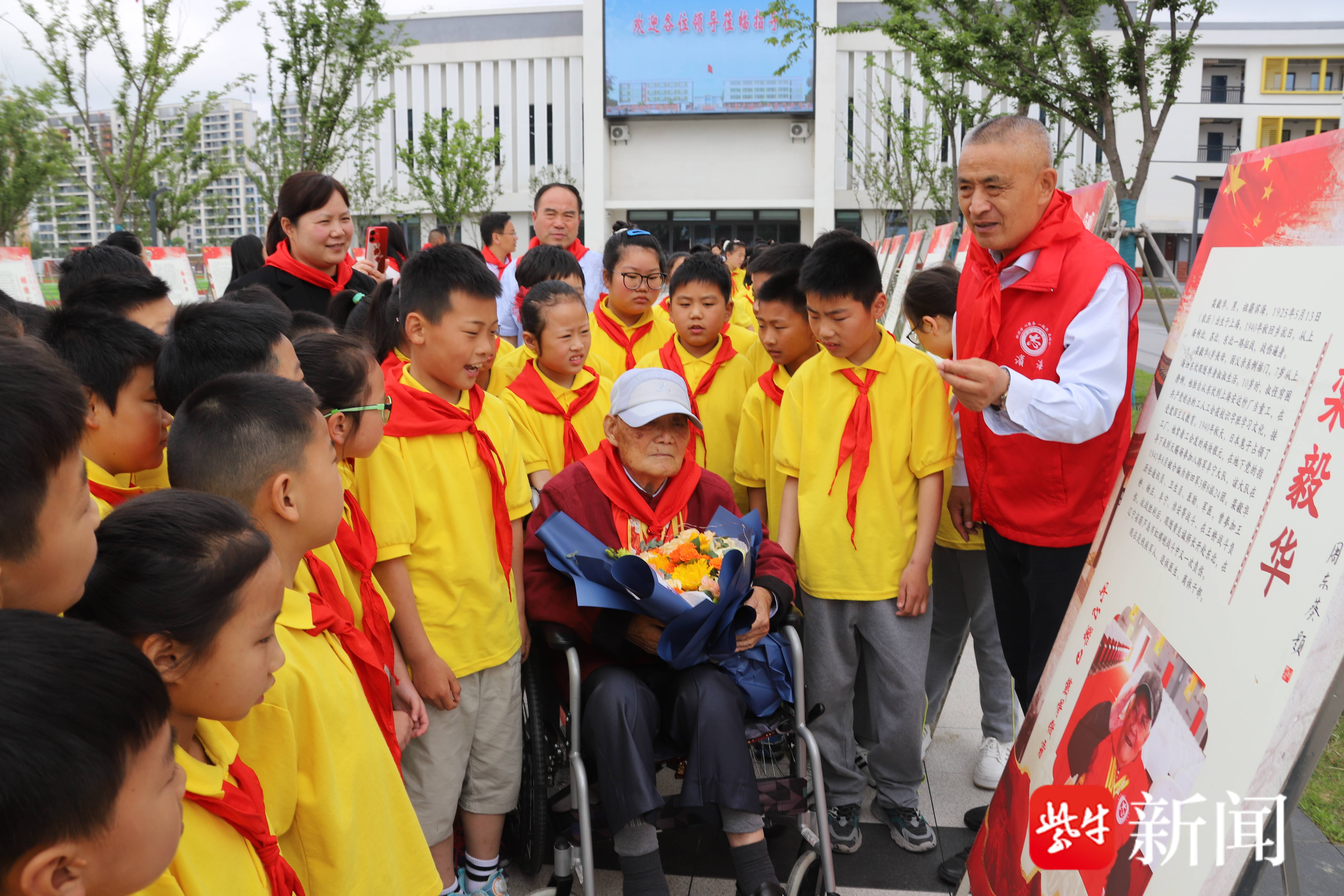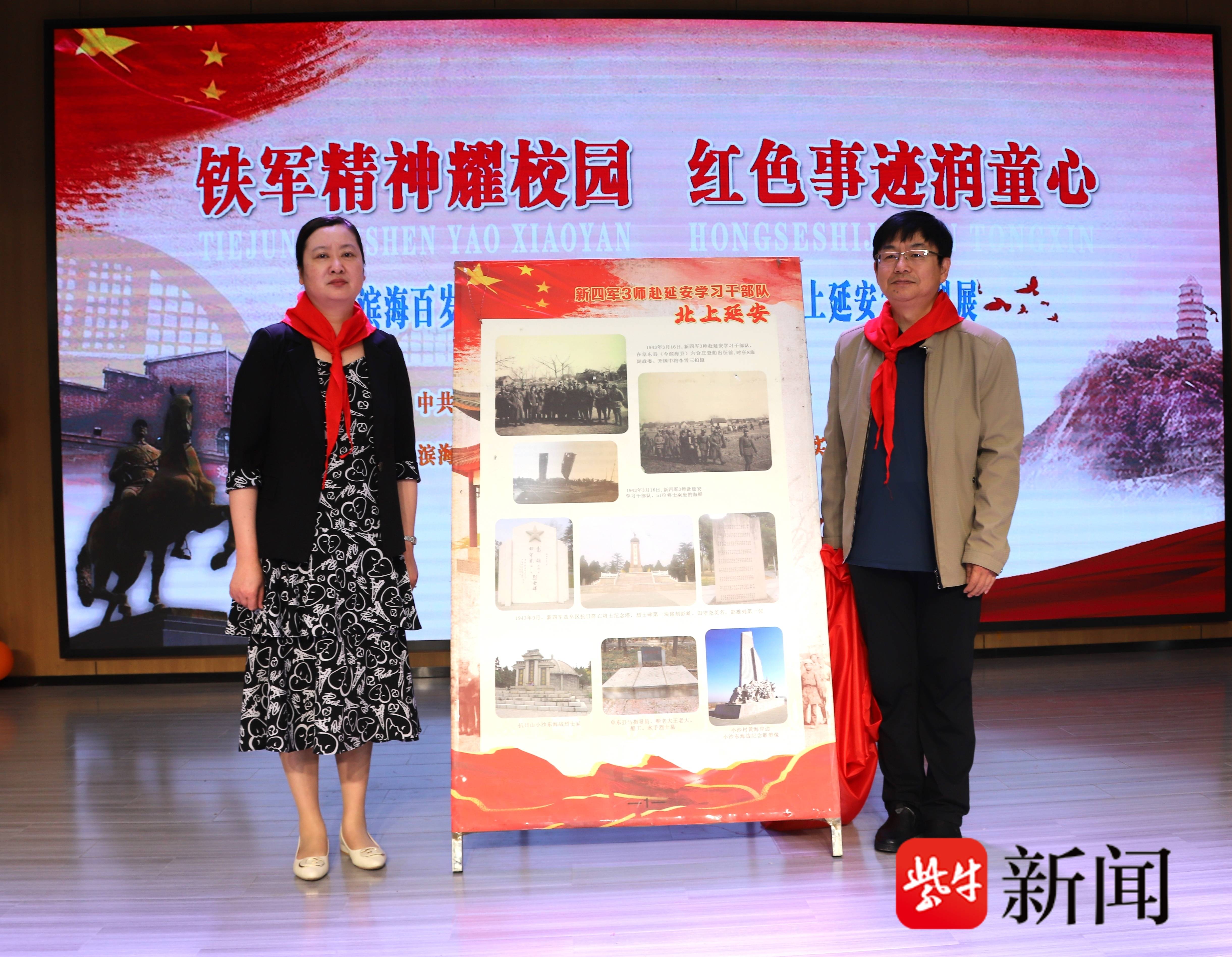 红色文化浸校园,丹心育才润童心。今年6月1日,盐城市滨海县实验小学育才路校区的孩子们过了一个意义特别的“红色儿童节”。“滨海百岁新四军老战士事迹展”、“北上延安”英烈展在该校举行,王育才烈士战友、99岁新四军老战士栾毅华为展览揭幕。中国好人、滨海县新四军研究会会长徐振理为该校师生作了《少年新四军故事》红色文化讲座,并在展板前为广大师生讲解。