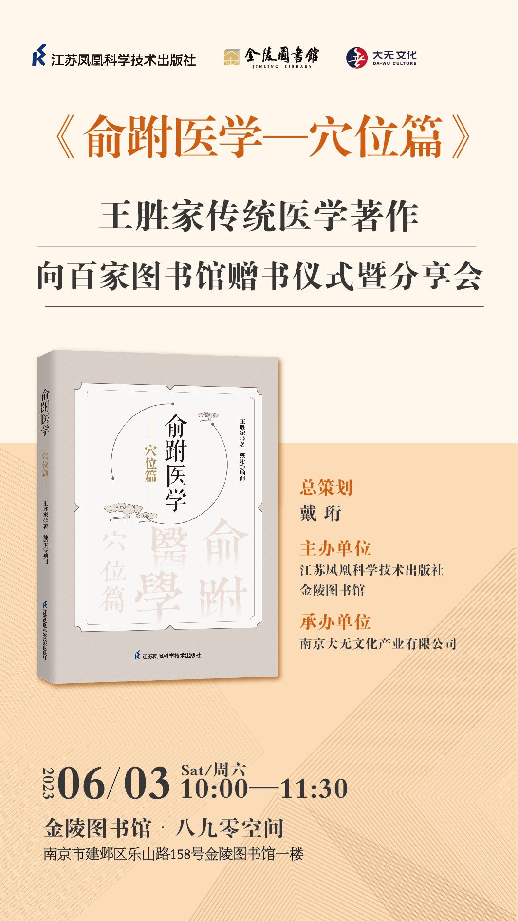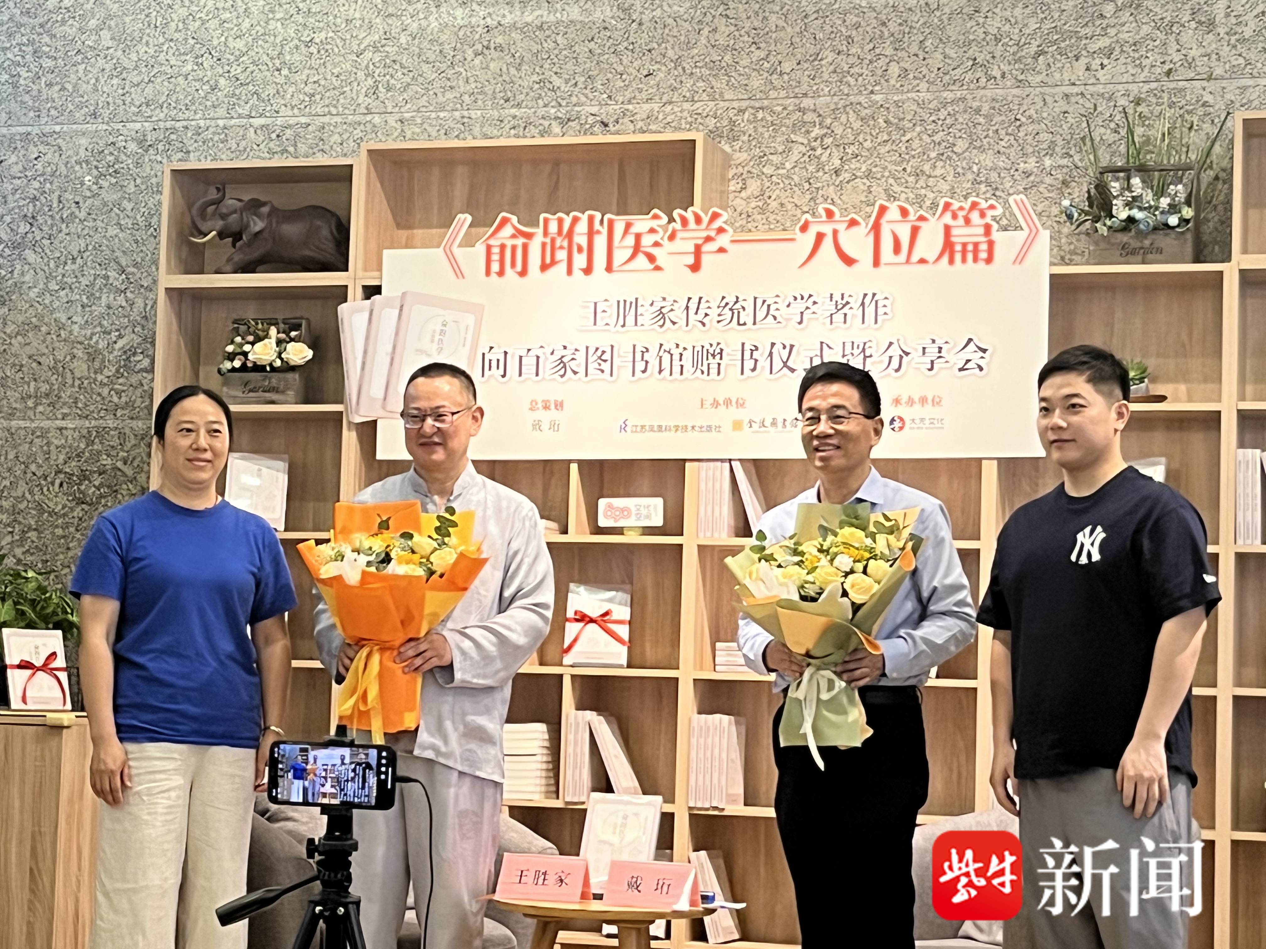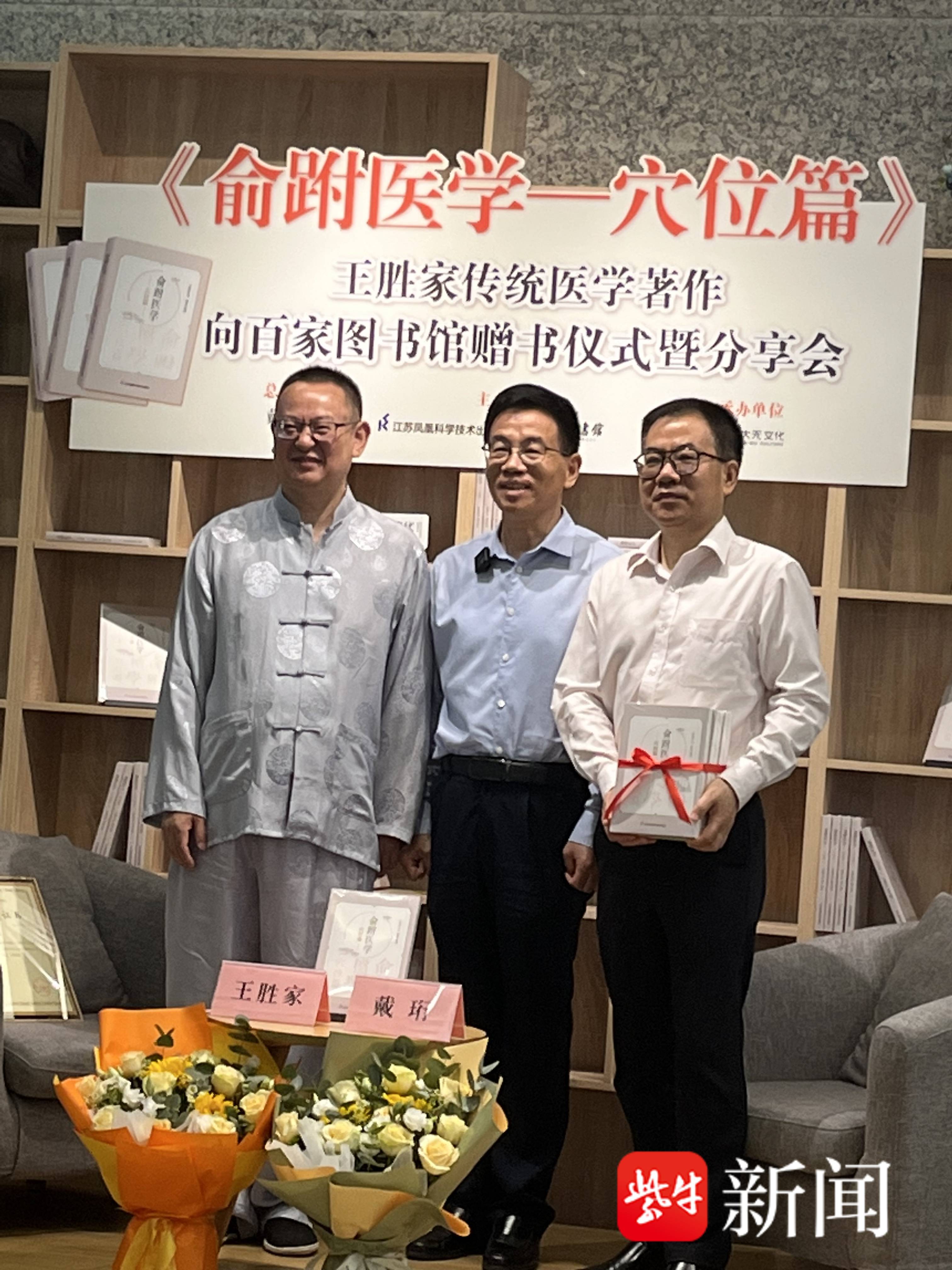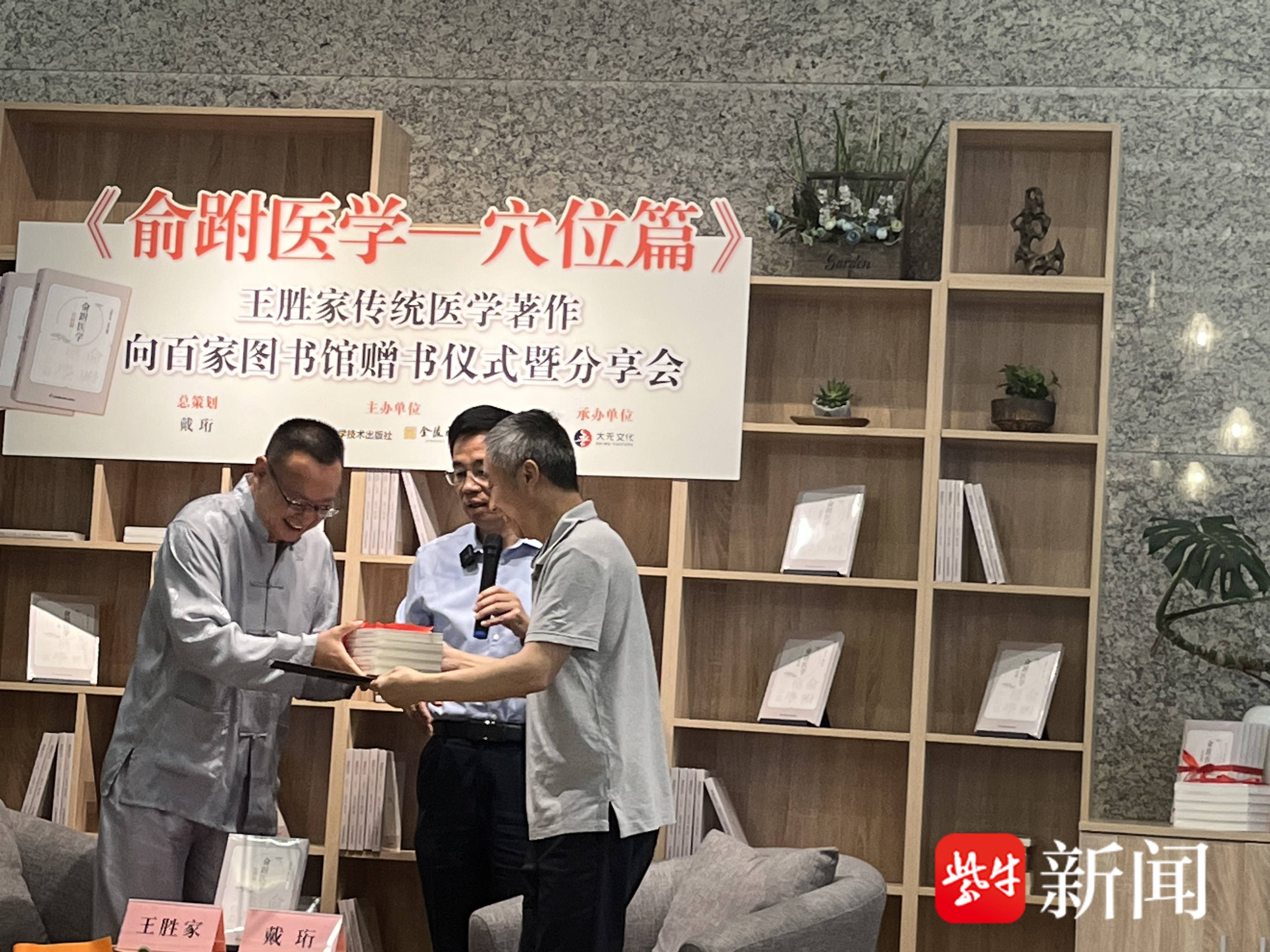 6月3日上午,《俞跗医学——穴位篇》王胜家传统医学著作向百家图书馆赠书仪式暨分享会在金陵图书馆举行。温和敦厚的中医王胜家欣慰表示:“此书的出版,让俞跗医学的诊疗技术终于交付社会、重归大众,我可以无愧地告慰俞跗医学、告慰历代研习者和田氏家族历代守护者。”该书的出版顾问、文化学者、江苏省文史研究馆馆员戴珩主持赠书仪式暨分享会。戴珩娓娓道来自己两年前结缘王胜家之后,历经波折,在江苏科技出版社的鼎力支持下,终于顺利出版该书,“使得俞跗医学第一次以出版物的形式进入广大民众的视野,能够更好地传承、保护、发展、利用。举行向百家图书馆赠书仪式的意义也在于此。”