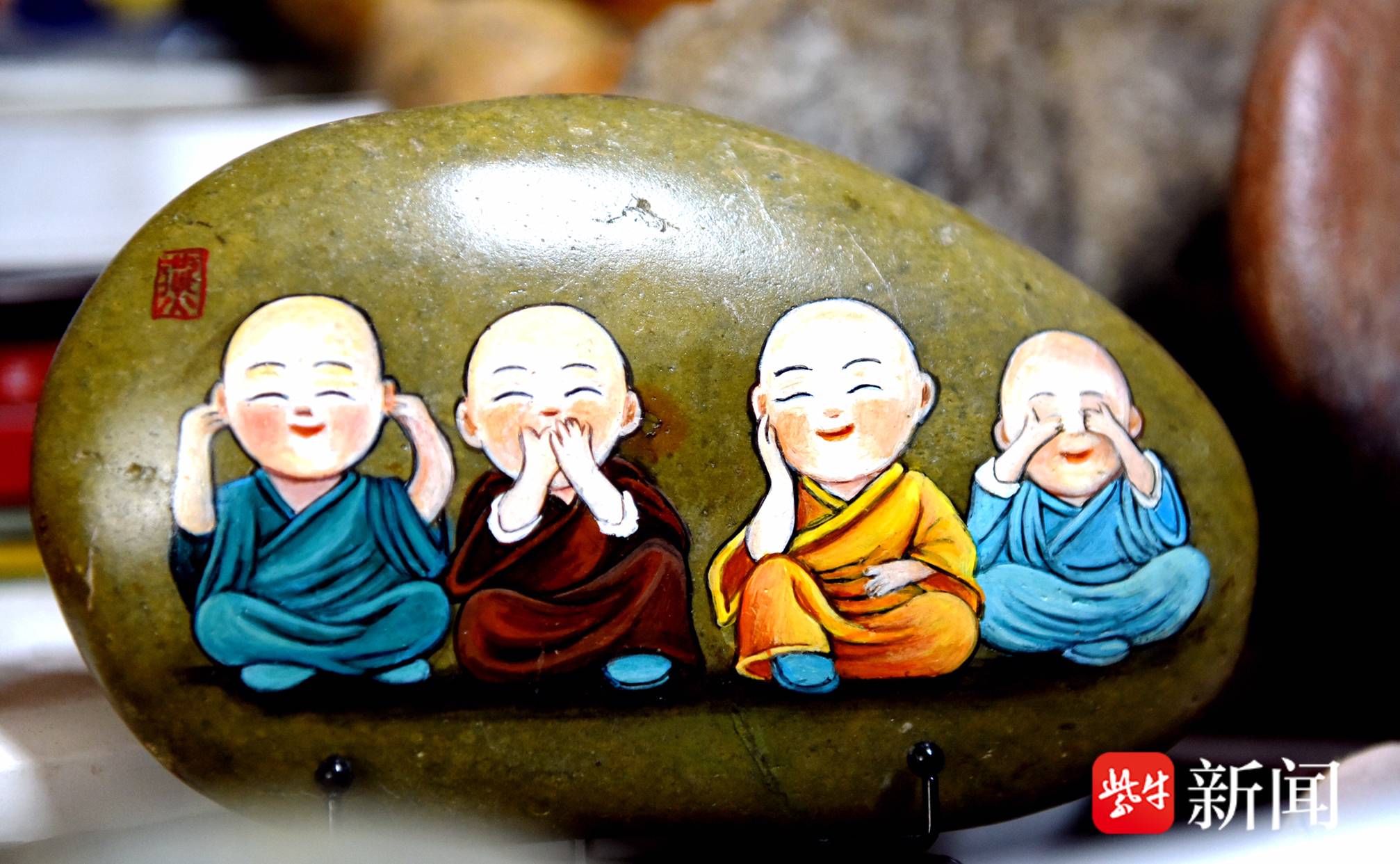 “我选择石绘画,也是有多方面考量的。”刘燕十平方米的便民超市里,刚刚悬挂起来的“扬州市刘燕石画工作室”招牌十分醒目,她对记者说道:“一方面,我本身有绘画底子,又十分喜欢画画;另一方面,我们仪征是天然鹅卵石产地,画画的原料可谓取之不尽。