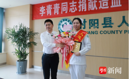 6月9日上午,盐城市射阳县人民医院产科护士李青青,赴南京明基医院捐献造血干细胞,为一名素昧谋面的再生障碍性贫血患儿捐献“生命火种”。李青青是射阳县第13例、盐城市第97例捐献造血干细胞的志愿者。