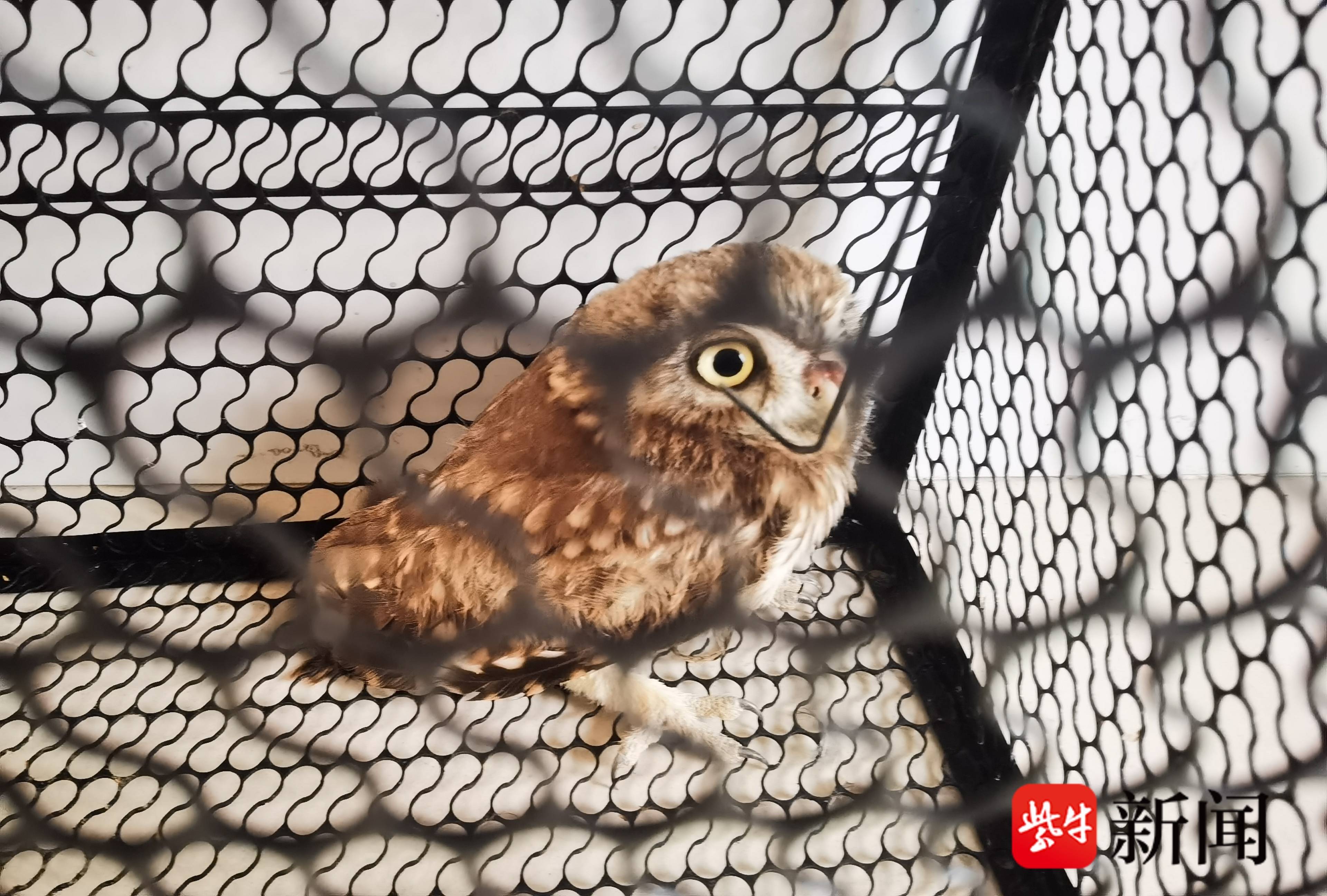 原来,当晚朱某发现自家二楼房间内闯进了一只巴掌大的鸟,浑身褐色的羽毛,两只滴溜溜的大眼珠子和钩型短喙,正是一只猫头鹰,朱某多次驱赶,但是这只猫头鹰还不会飞,应该还是幼鸟,考虑到猫头鹰是保护动物,并且害怕被野猫捕食,朱某连忙将小猫头鹰装进了笼子里并报警求助。
