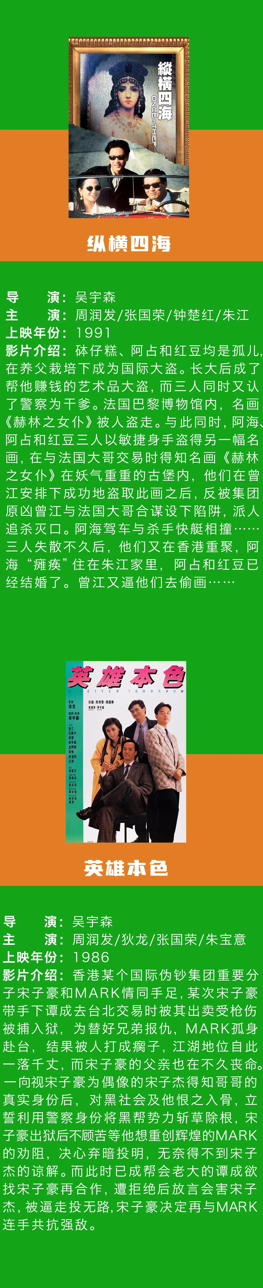 据悉,此次展映影片包含《倩女幽魂》、吴宇森导演犯罪片力作《纵横四海》和《英雄本色》、第42届柏林国际电影节主竞赛单元提名《阮玲玉》,以及由梅艳芳主演的影片《胭脂扣》。