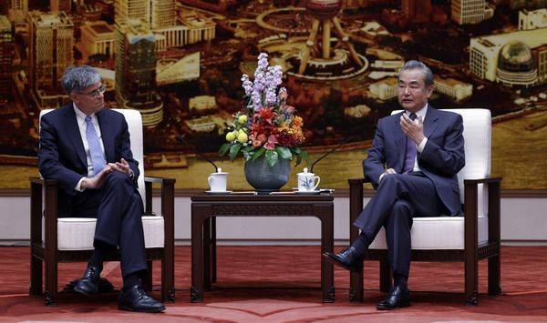 2023年6月26日,中共中央政治局委员、中央外办主任王毅在北京会见美中关系全国委员会董事会主席雅各布·卢、副主席格林伯格以及会长欧伦斯。