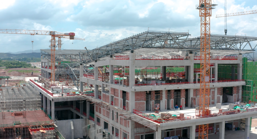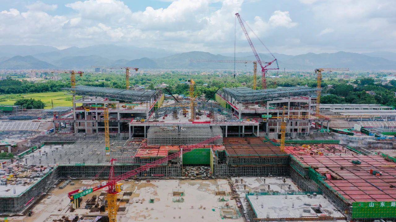 远远望去,造型酷似凤凰展翅的站房轮廓初显,各项建设正如火如荼进行中。