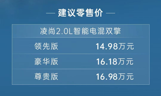在第五代智能电混双擎技术加持下,凌尚智能电混双擎所搭载的2.0L智能电混双擎动力,三电系统通过革新性的轻量化和小型化以及降低损耗,带来了颠覆性的电动化效率。系统最大功率112kW/6000rpm,提供强劲动力响应,带来媲美纯电的加速直接感和弹射感,加速体验更丝滑,能效输出更稳定。