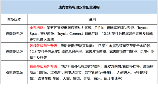 向电新生,跃级而上,随着凌尚智能电混双擎正式面世,广汽丰田进一步补强业内领先的智能电混产品矩阵,覆盖各细分市场及价格区间,提供全方位电动化解决方案。面向未来,广汽丰田将持续践行全方位电动化、科技化战略,不断加快产品技术的迭代升级,全面迈入智能电混双擎新时代。