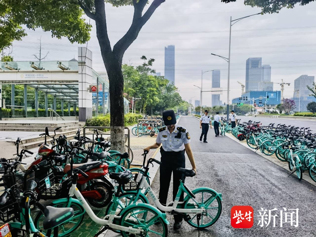 “这是块硬骨头很难啃,之前各家共享单车公司都是按照‘各自为政’的思维模式,我们也是与街道、城管等职能部门多次进行实地考察与座谈交流,才与共享单车公司达成一致。”孟宪桐说。经多方努力,最终在市城管局的统一部署下,确定了全市共享单车的分区域管理机制,由三家共享单车公司其中一家按区域包干管理,大大提高了响应速度及管理效率。此外,南京地铁集团在中胜站2A号口放置隔离防护栏,制定高峰期驻守、平峰期巡查的错峰管理模式,各子单位发挥各自的业务特性设立机动巡查组,做到单车聚集停放看得见、管理人员来得快、违停车辆运得走。当天晚高峰过后,共享单车公司立即对车站门前堆积的大批车辆进行了集中清运,并承诺会在第二天早高峰时段,有序进行分批投放。