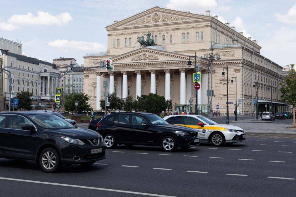 6月26日,在俄罗斯首都莫斯科,车辆驶过市中心道路。新华社记者白雪骐摄