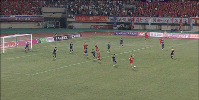 第37分钟,迪力夏提左路传中,向余望小禁区前沿头球冲顶破门,0:1。