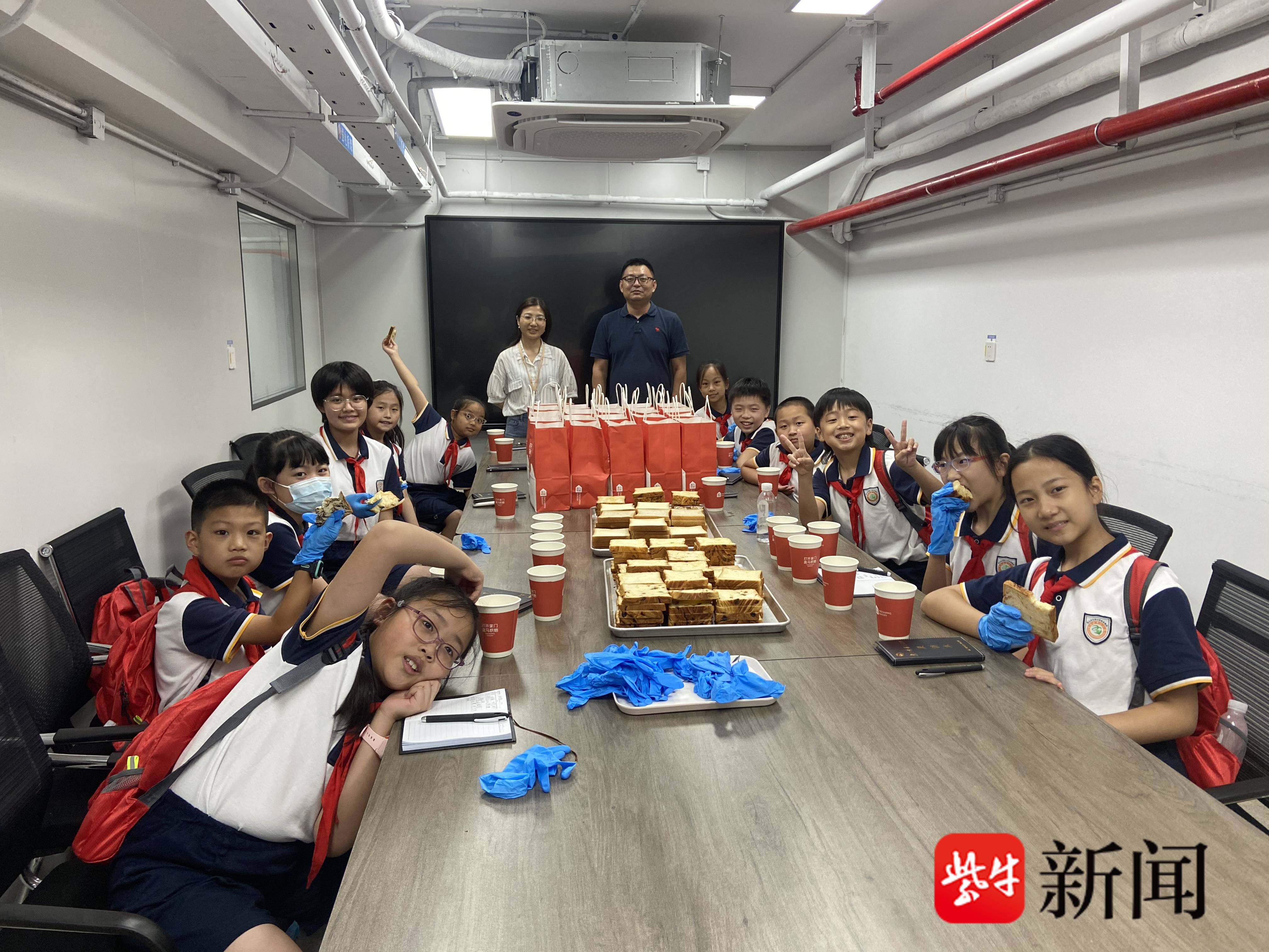 “明明是生产面包的公司,为什么却取名‘糖盒’呢?”在第四个采风点,小团员们对糖盒公司的名字抱有疑问。“因为面包就像糖果一样给人甜甜的感觉!”知晓答案后,团员们“哇”出了声,仿佛听到这个名字就已经尝到甜甜的滋味。参观完工厂,讲解老师还为采风团摆了一桌“面包盛宴”,各种口味和品类的面包一应俱全。团员们品尝着美味的面包,时不时爆发出“好吃”的称赞声,甚至还想着要带回去给爸爸妈妈尝尝!