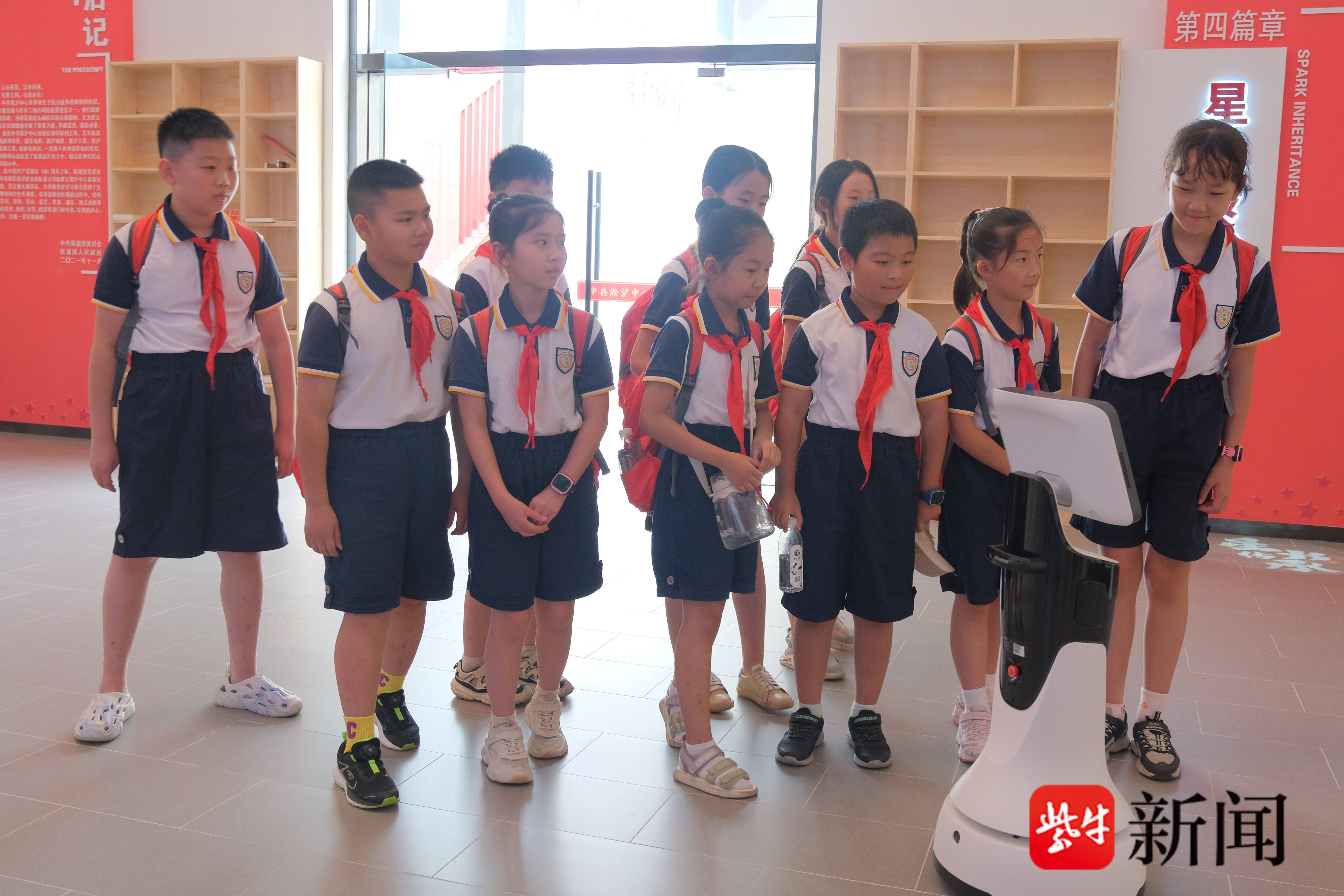 来到中共淞沪中心县委纪念馆,“采风团二队”按照“浴血奋生、敌后斗争、转战浙东、星火传承”四个篇章进行了参观。团员们通过讲解介绍和馆内大量历史资料和文物,了解了中共淞沪中心县委和新四军淞沪游击纵队的抗战历史。在“星火传承”馆内,小团员们更是激动地将机器人“蒲小宣”围了起来,让其带领自己参观。昆山市张浦镇第二小学四年级(6)班的马瑞隆说:“‘蒲小宣’幽默风趣,博学多才,给我们讲了许多抗战故事呢!”参观完淞沪馆,昆山市张浦镇第二小学五年级(9)班的尧瑶心生感触:“顾德欢同志在遗书上写到,要将器官捐给国家,要将骨灰撒入大海。他们鞠躬尽瘁、死而后已的精神让我很是敬佩!”