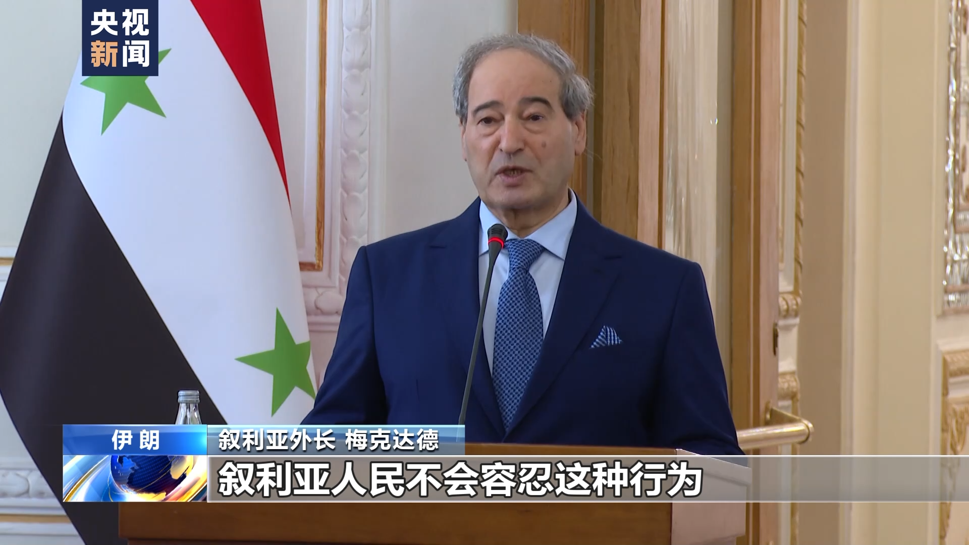 叙利亚外长 梅克达德:双方在会晤中谈到了,美国在地区内的破坏性作用,以及其对叙东北部部分地区的直接占领。我们想对每天都在犯下罪行的美国人说,这种情况不会持续下去。我们想对美国国会以及所有支持美国犯下战争罪、反人类罪等侵略行为的人说,叙利亚人民不会容忍这种行为。
