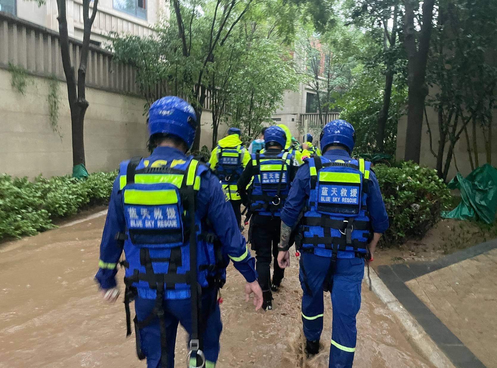 为应对强降雨给门头沟区和房山区带来的汛情险情,北京蓝天救援队在7月31日第一时间发起动员救援队队员奔赴两地开展救援工作,天津、江苏、河北等地的蓝天救援队也派出了队员前来支援救援工作。