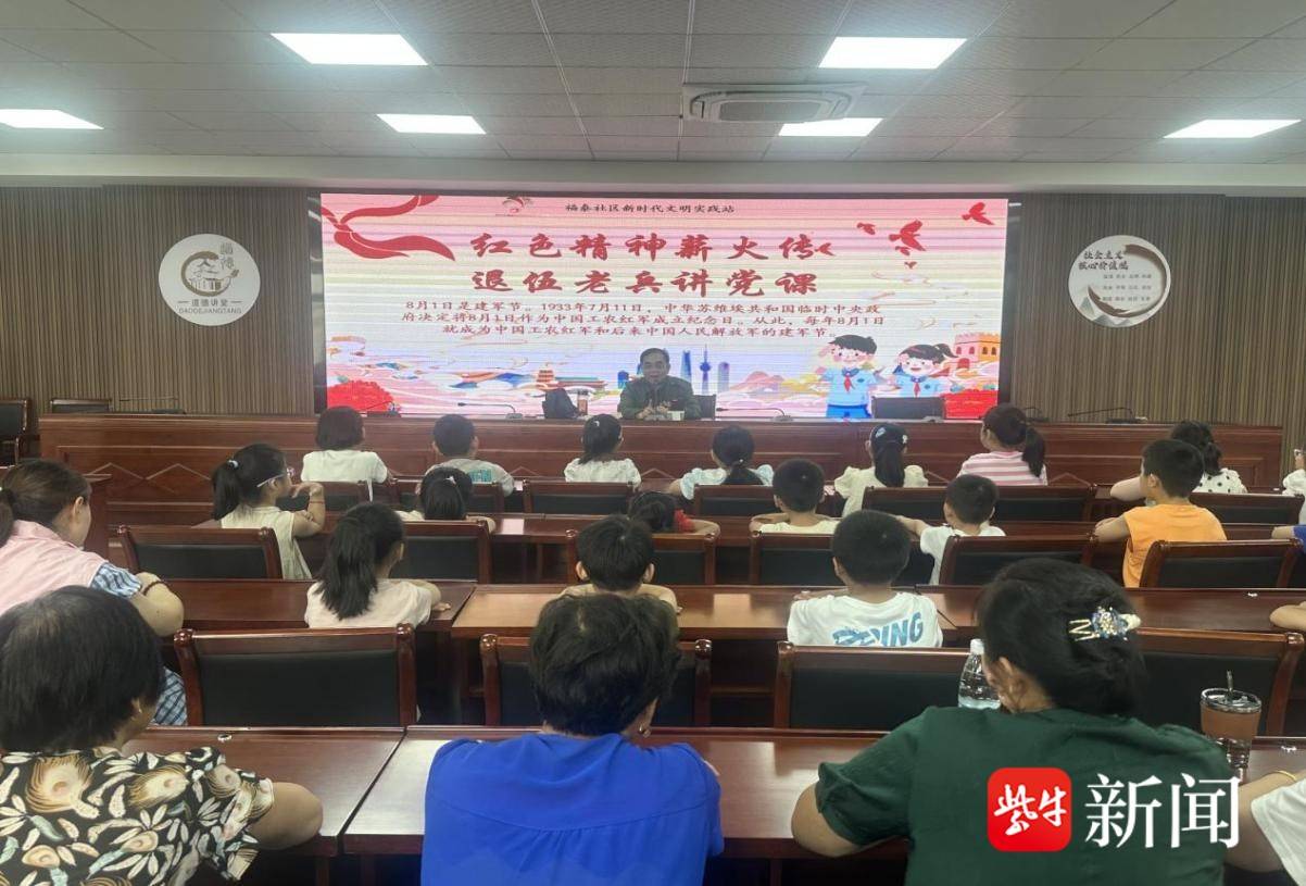 赓续红色精神,老兵讲党课。滨江镇福泰社区邀请退伍军人、党员代表顾先锋到现场为居民分享部队生涯的光辉事迹。战场的情景历历在目,退伍老兵通过自身的经历讲述抗战时期的革命先辈,为了理想信念而浴血奋战的感人故事。孩子们深情回顾解放军的奋斗历史,继承和发扬解放军的光荣传统和优良作风,明白当今幸福生活来之不易,激发历史责任感。