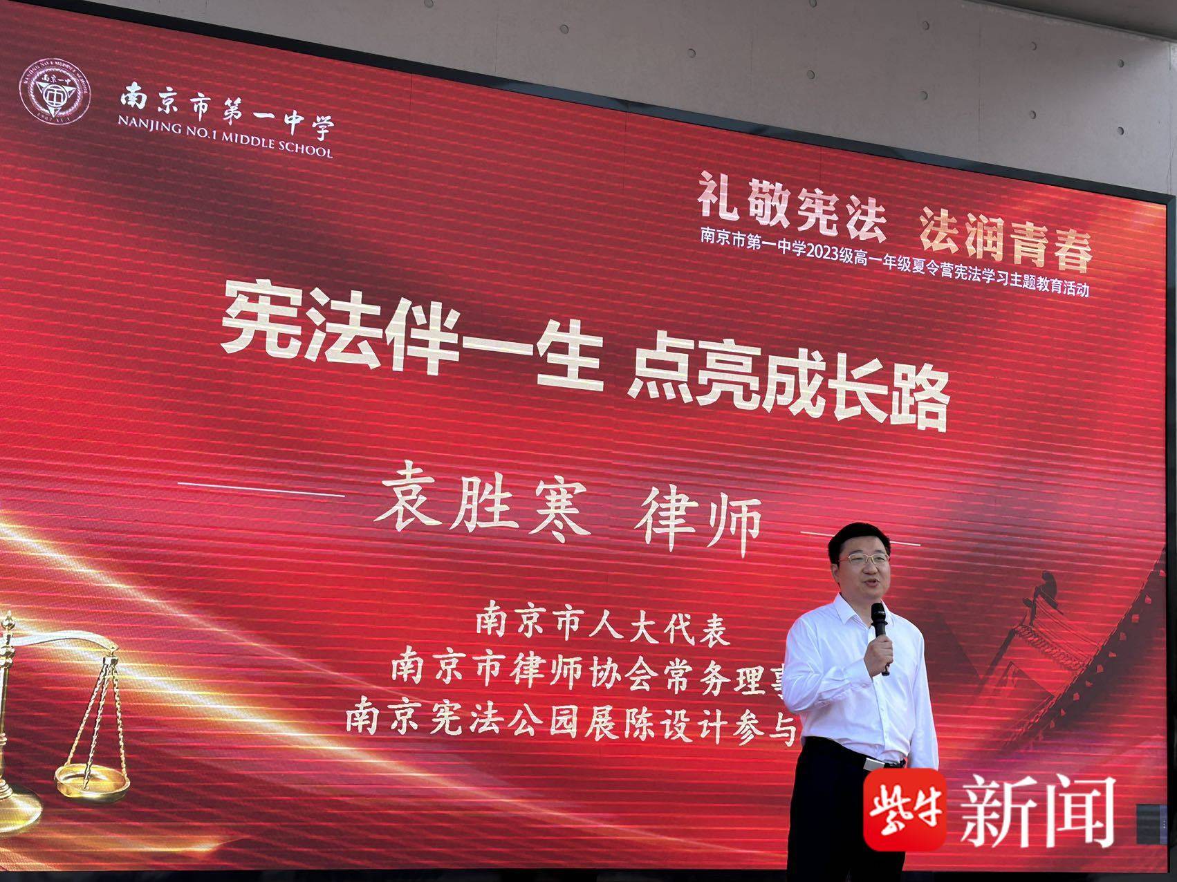 参观宪法宣传教育展、开展宪法主题宣讲……8月4日,南京市第一中学2023级高一年级近1200名学生齐聚南京宪法公园,参加“礼敬宪法,法润青春”主题教育活动。据了解,南京一中为帮助2023级学生更好地适应高中生活,厚植爱国爱校情怀,组织开展了新生暑期夏令营系列活动,包括生涯规划讲座、班集体素质拓展等。此次宪法主题活动也是系列活动之一,旨在加强学生宪法教育,提升学生宪法意识,扣好高中成长路上的第一粒扣子。