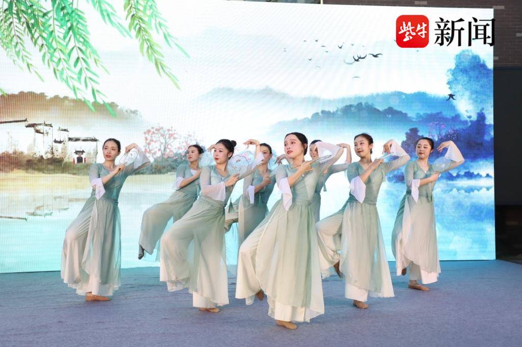 舞蹈《上铃鼓》、《醉清波》、《簪花引》则展现了曲清心静、携花起舞的幸福与闲适。随后,戏曲《沙家浜》、连厢舞《拔根芦柴花》等特色节目接连上演。最后,在广场舞《奋进新征程》中,开幕式文艺表演落下了帷幕。