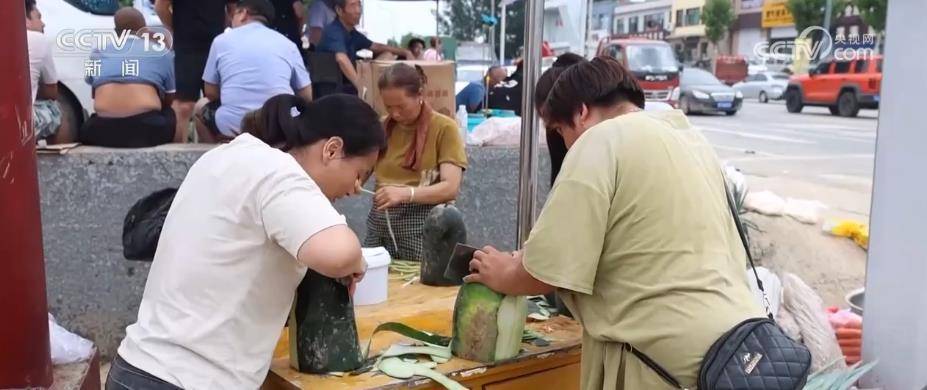 8月6日下午,在河北涿州西茨村村口,几位志愿者正在准备晚饭,不少村民也帮忙削皮、切菜。
