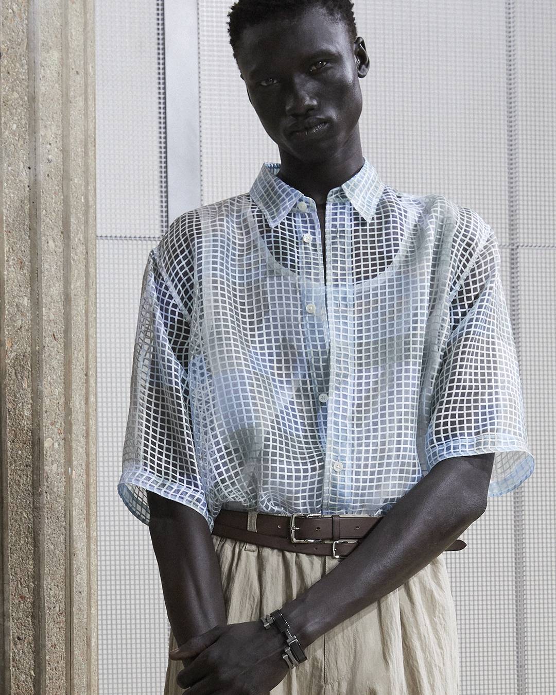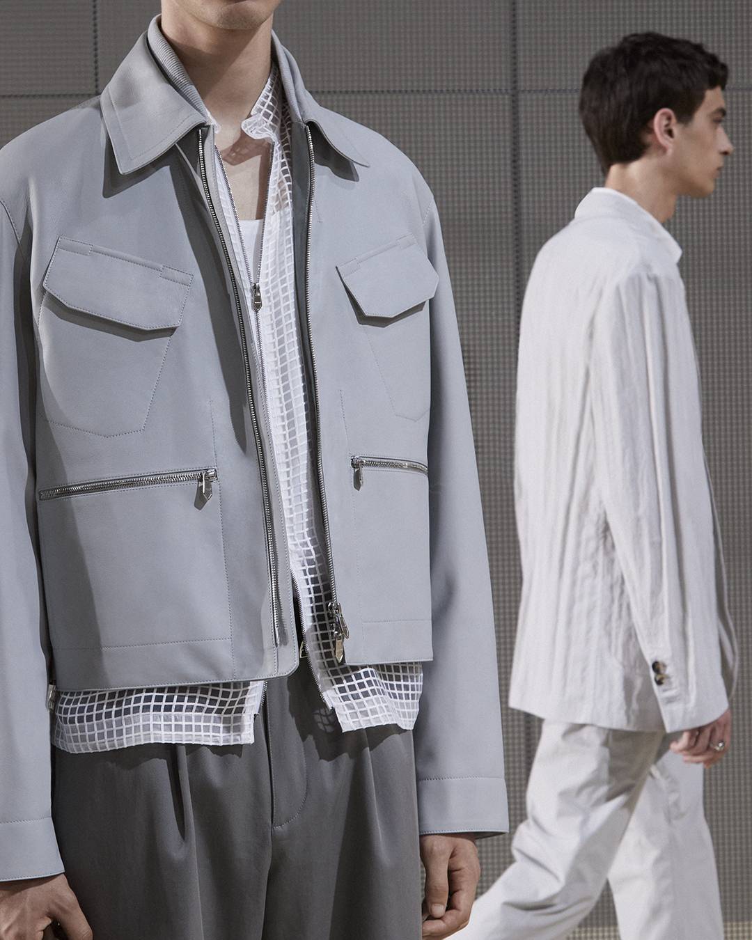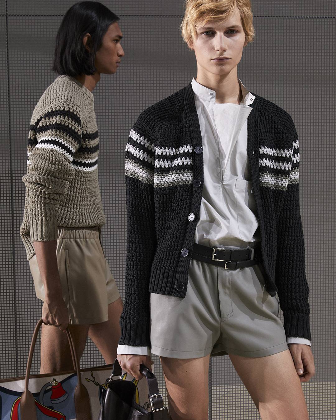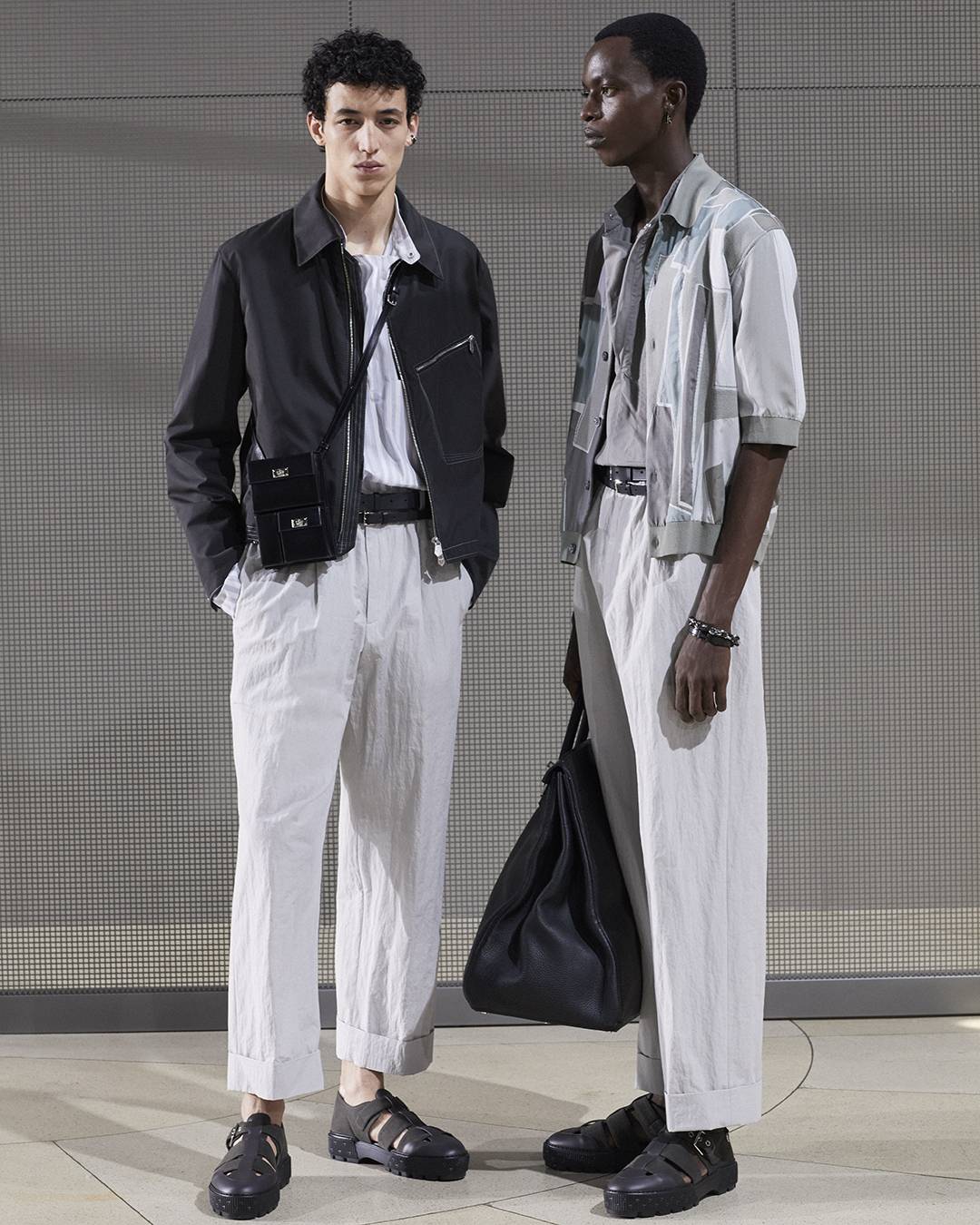 短裤、夹克与短身风衣超脱束缚,微长夹克与修身长裤带来轻盈质感。阳伞条纹科技织物套头衫与沙滩外套,唤启夏日冒险之旅。圆肩剪裁夹克配搭卷边长裤,与宽松针织衫携来暖意。重磅真丝面料的运用,则为朗朗夏夜带来怡人体验。