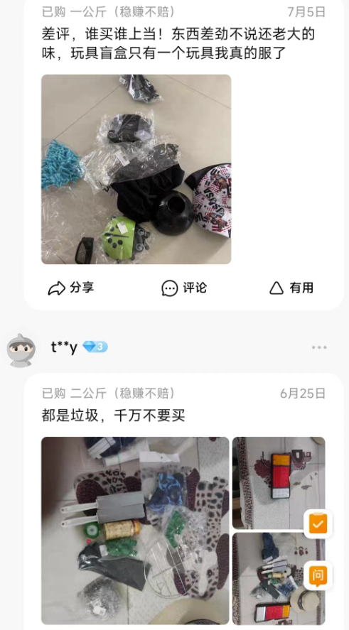 商品评论区中不乏抱怨的声音:“不知道有什么用,买了一堆垃圾。”“差评,谁买谁上当。”“也不知道是啥东西,也不知道有啥用。”
