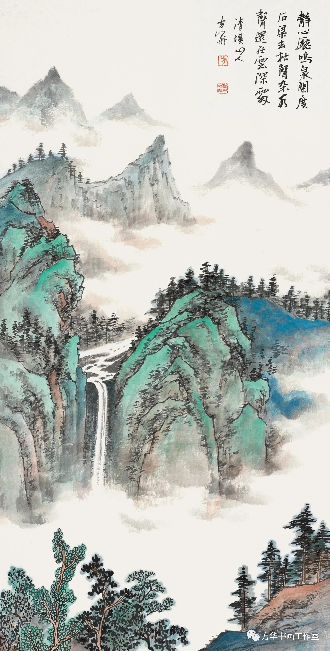 方华的山水画延续“新金陵画派”的审美情趣,以描绘秀丽的江南风光为主线,清而不浊,古而不板,传统中透着新意,清逸雅丽、恬静疏旷。方华是一个谦和的雅士,文人的气质在作品的审美取向上得到了自然而然的流露。