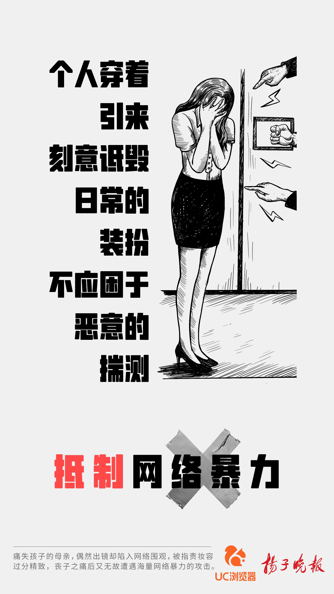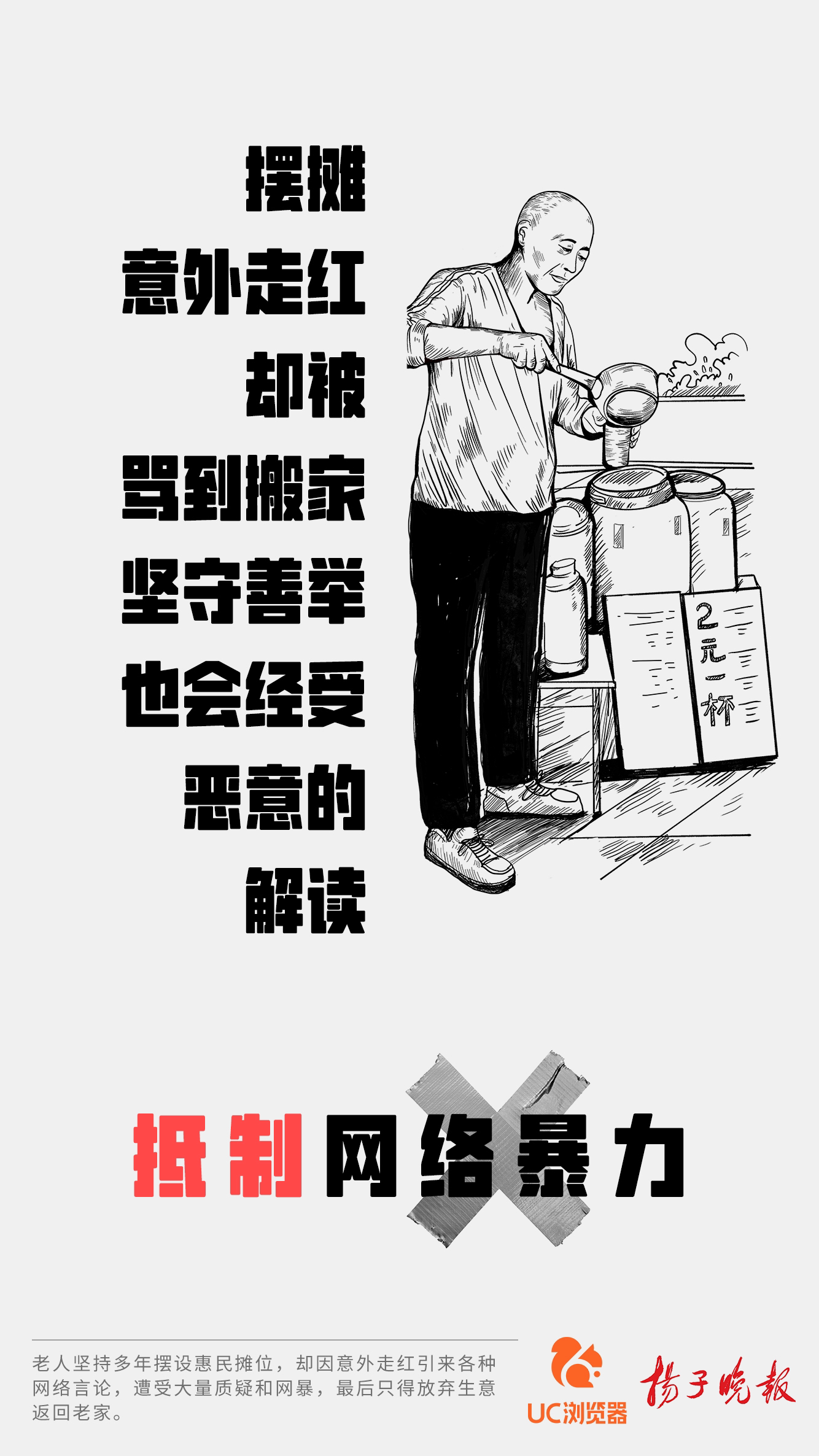 近日,UC浏览器联合多家主流媒体,共同发起 “抵制网络暴力”公益宣传活动。中国青年网、扬子晚报、潇湘晨报、新快报、钱江晚报、极目新闻、齐鲁晚报等通过官方微博发布主题海报,倡导广大网民提升反网暴意识,全民行动共同抵制网暴行为。