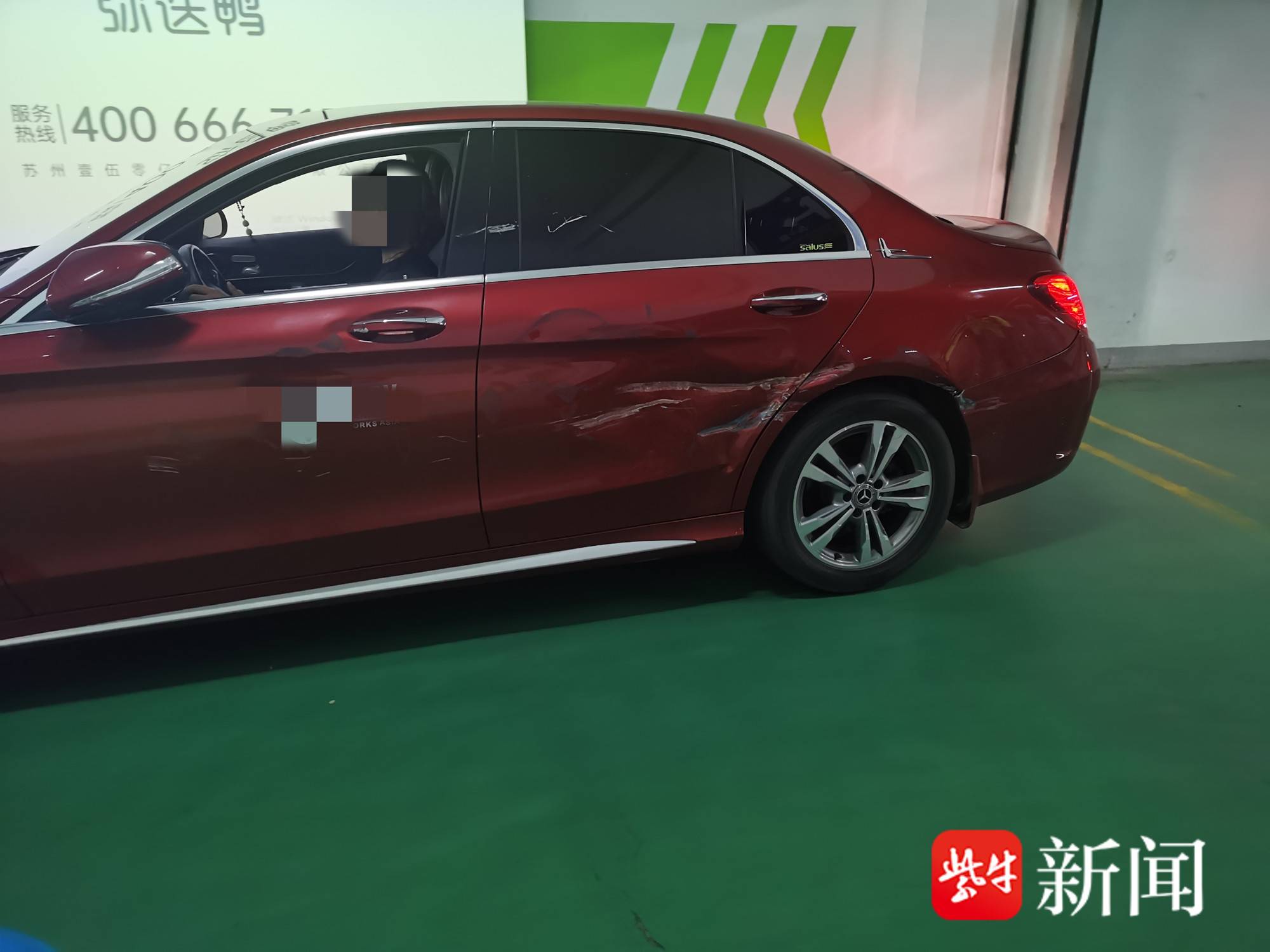 图为奔驰车一侧被撞