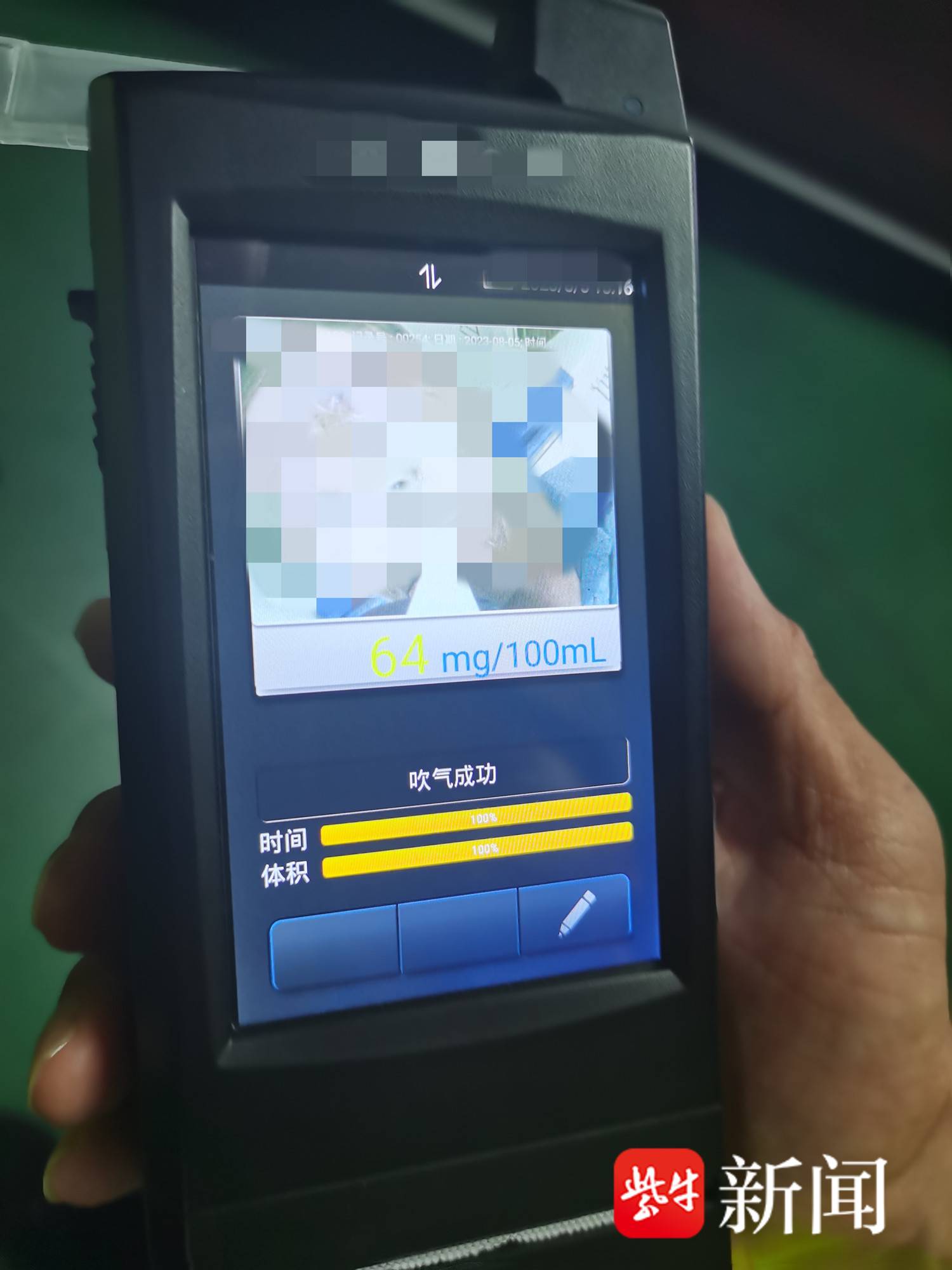 图为三轮车车主被测出酒驾