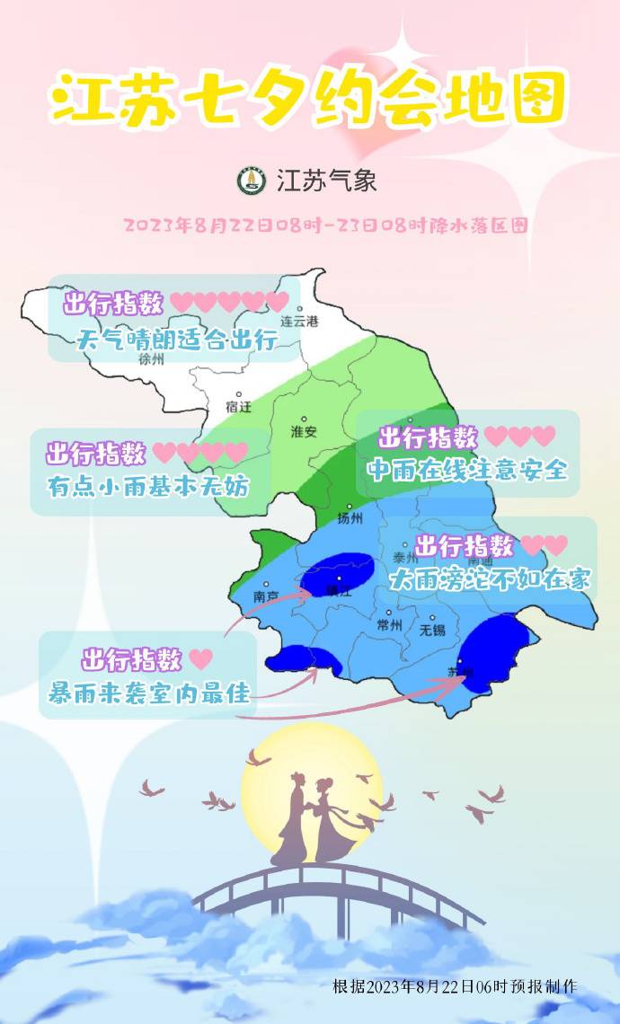 江苏气象发布江苏七夕约会地图,雨什么时候停?