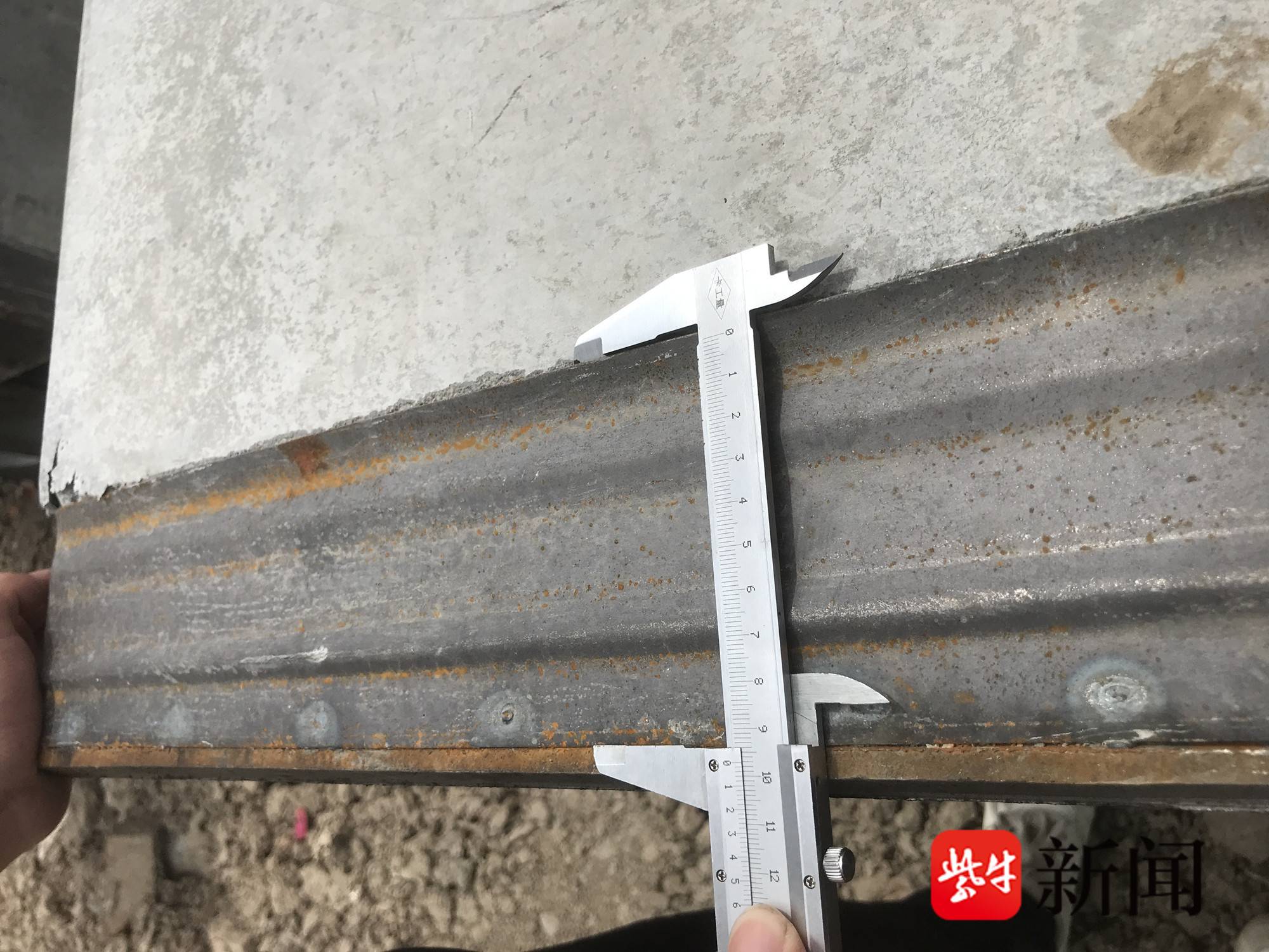 “露在外面这么直观的构件都出现如此严重的‘缩水’,那被混凝土包裹在内的‘骨架’筋是否达标,不由得不让人怀疑。”这位报料人对记者说,除非有专业机构或者质量监督管理部门现场破拆抽检,得出的数据才令人信服。