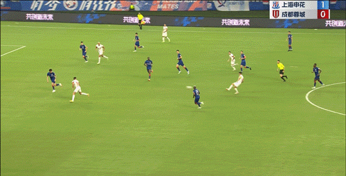 第19分钟,巴索戈主罚角球开出,朱辰杰头球摆渡,蒋圣龙门前头球冲顶入网,申花队1:0领先。这是这位南京小伙本赛季打入的第4粒进球。