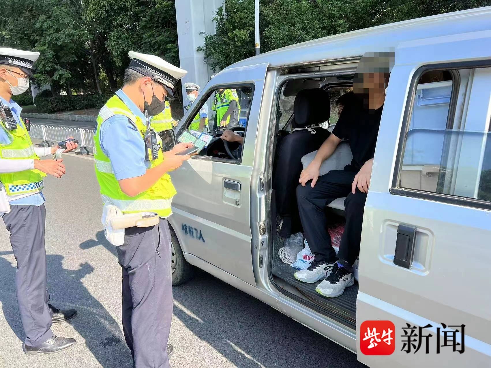 扬子晚报网9月1日讯(记者 郭一鹏 通讯员 王晨)近日,南京交警八大队执勤一中队警力在赛虹桥转盘开展面包车改装专项整治,在拦下一辆面包车检查时发现,该车后排座椅被拆掉放满了货物,并且车厢内还坐着一名孩子。
