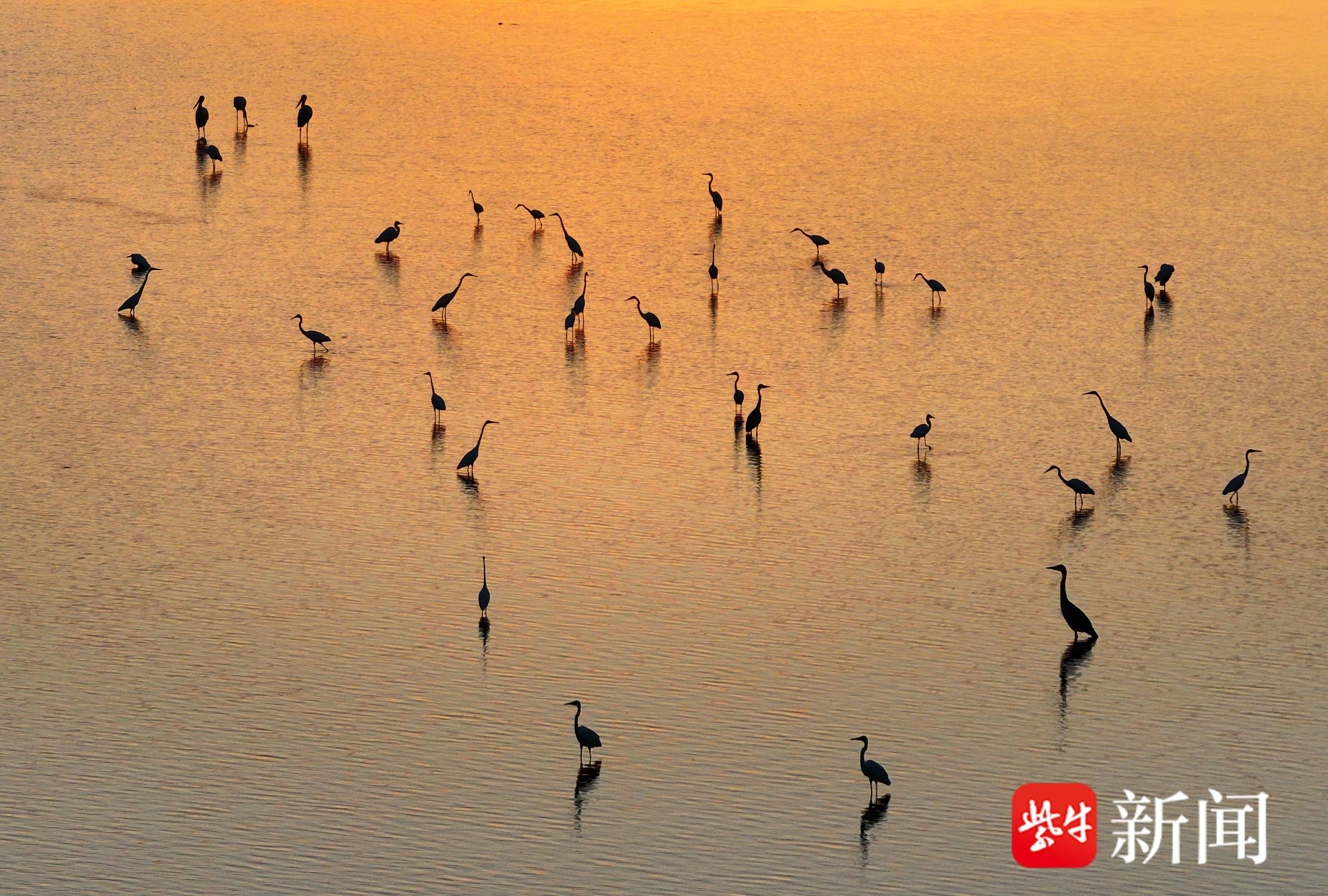 近年来,盱眙县开展了退耕还湿、禁牧、禁渔、湿地修复等一系列保护措施,生态环境日益改善,生物多样性得到有效保护。丰富的食物和适宜的栖息环境,吸引东方白鹳、天鹅等野生鸟类成群结队在此落脚。