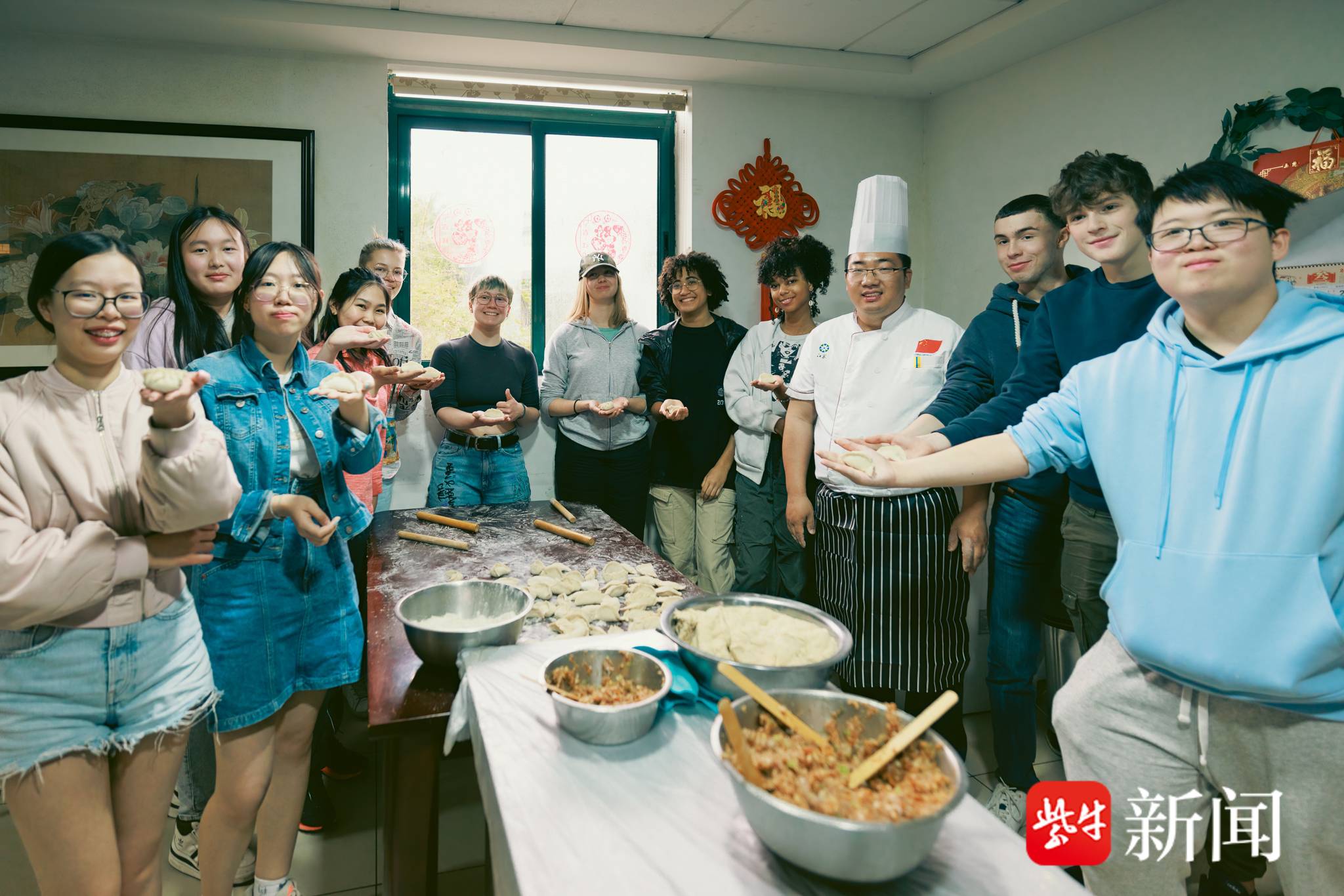 2023年4月5日,教来自卢森堡和德国的中学生包饺子