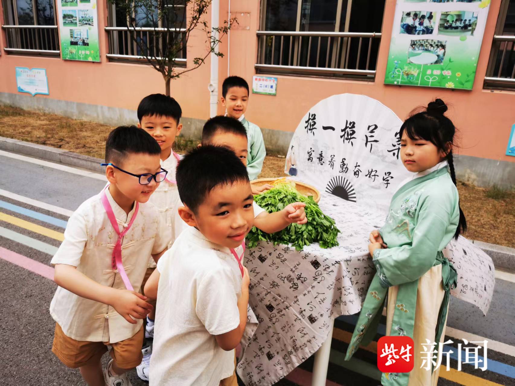 活动开始前,学校组织这些初入校门的孩子们,参加“击鼓明志、吉物启智”活动,从实践中增长智慧。老师们说:“击一击鼓,寓意着一鸣惊人;摸一摸苹果,寓意着平平安安;摸一摸香葱,寓意着聪明伶俐;摸一摸芹菜,寓意着勤奋好学;摸一摸棒棒糖,寓意着身体棒棒、学习棒棒;捧一捧经典书籍,寓意着继承优秀传统……”生动活泼的形式,引起了孩子们浓厚的兴趣,他们纷纷用小手触摸金秋的硕果,一切是那样好奇。