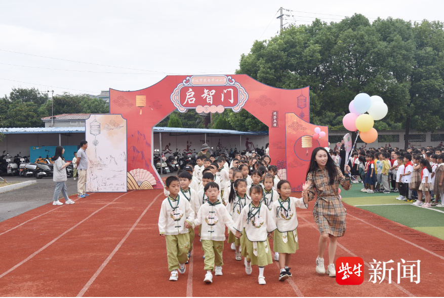 扬子晚报网9月4日讯(通讯员 袁开建 王晓荣 记者 王国柱)9月4日上午,在悠扬的音乐声中,兴化市戴南中心小学2023年级660名穿着汉服的新生,在气球指示牌的引领下,逐班走进红色的启智门,宛如运动员入场一样的壮观。这是该校"童蒙养正 礼伴成长”开学典礼暨一年级新生入学礼的“序幕”,也是兴化市文明办、教育局组织的未成年人“八礼四仪——入学仪式”示范观摩活动的一个场景。
