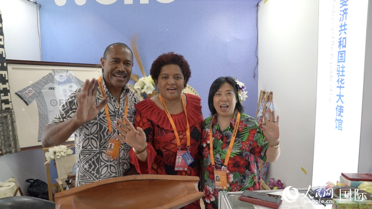 斐济共和国驻华大使馆二等秘书阿美莉娅·丛波娜(左二)。人民网 王禹蘅摄