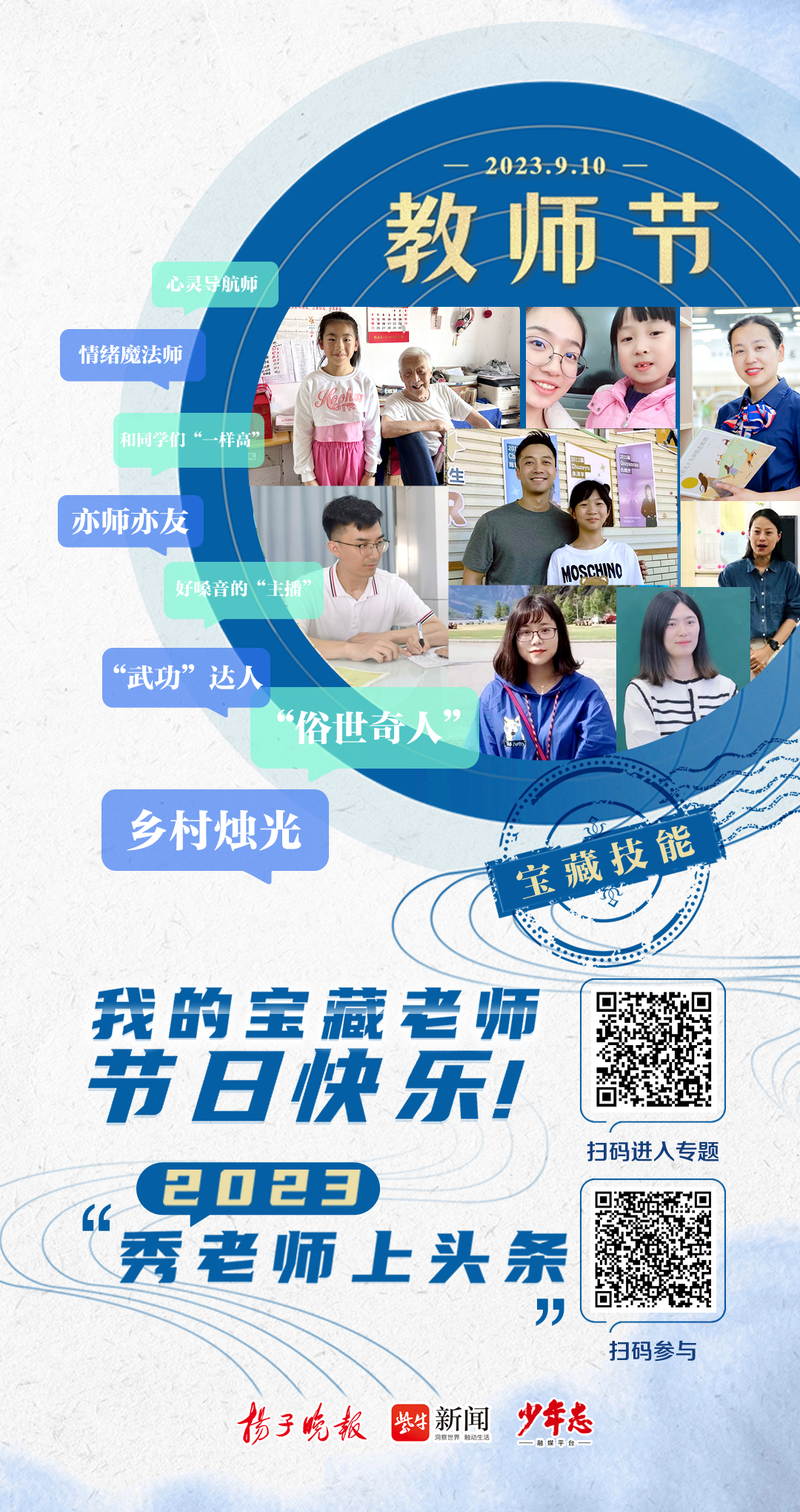 2023秀老师上头条 | “节日快乐!我的宝藏老师”系列海报献礼教师节!