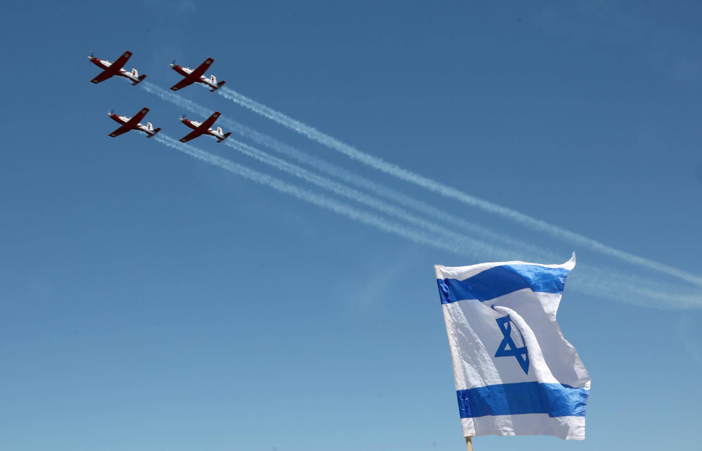 这是4月26日在以色列特拉维夫拍摄的飞行表演。新华社发(吉德翁·马科维奇摄/基尼图片社)