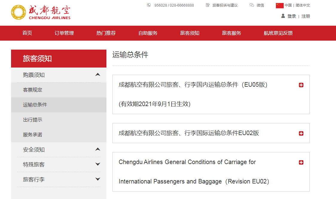 《成都航空有限公司旅客、行李国内运输总条件(EU05版)》