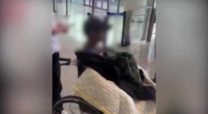 从网传视频中看到,9时45分左右,在EU2205次航班的登机口处,一名头戴黑色鸭舌帽的老人坐在轮椅上,身穿白色短袖的男子和一位老太坐在地上。男子向工作人员喊道:“承诺书签了,医院证明也写了,我还带了护理工,你不让我走。”