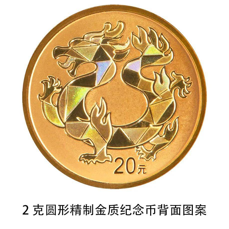 2克圆形金质纪念币背面图案为装饰龙造型,并刊面额。