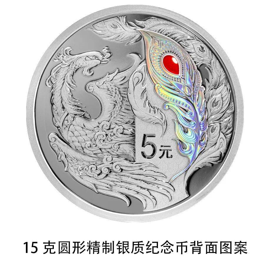 15克圆形银质纪念币背面图案为凤凰造型,并刊面额。