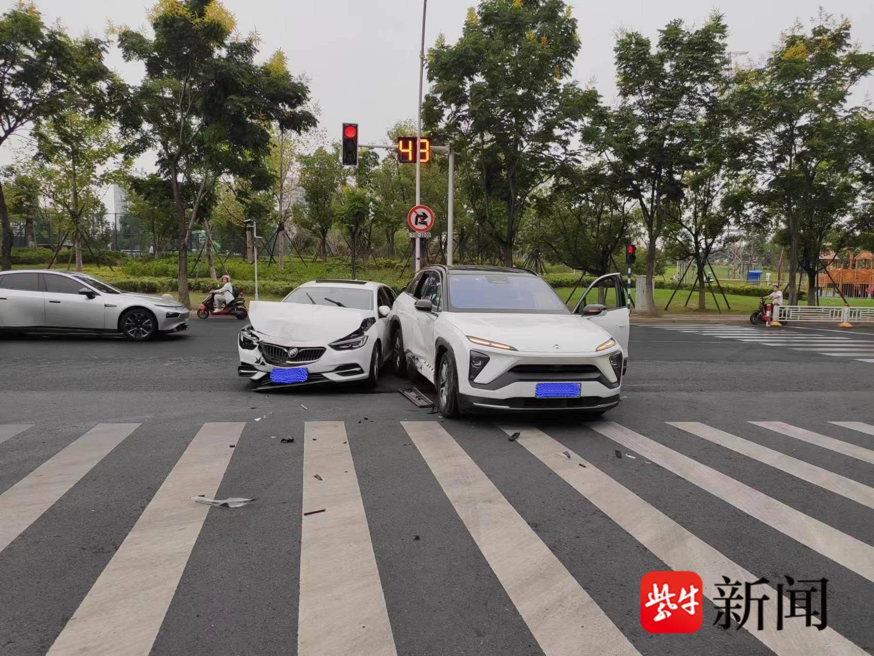扬子晚报网9月20日讯(通讯员 杨昌平 记者 梅建明)近日,南京江宁开发区交警中队接到报警,称在辖区淮浦路马牧东路路口处,发生了一起两车碰撞事故。民警赶至现场,发现路口停着两辆小轿车,一辆车头严重受损,引擎盖翘起。另一辆右侧车身严重变形,安全气囊弹出。