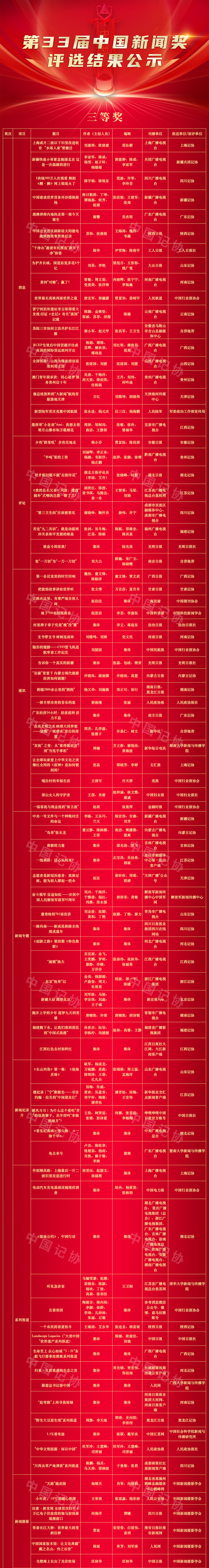 第33届中国新闻奖评选结果公示