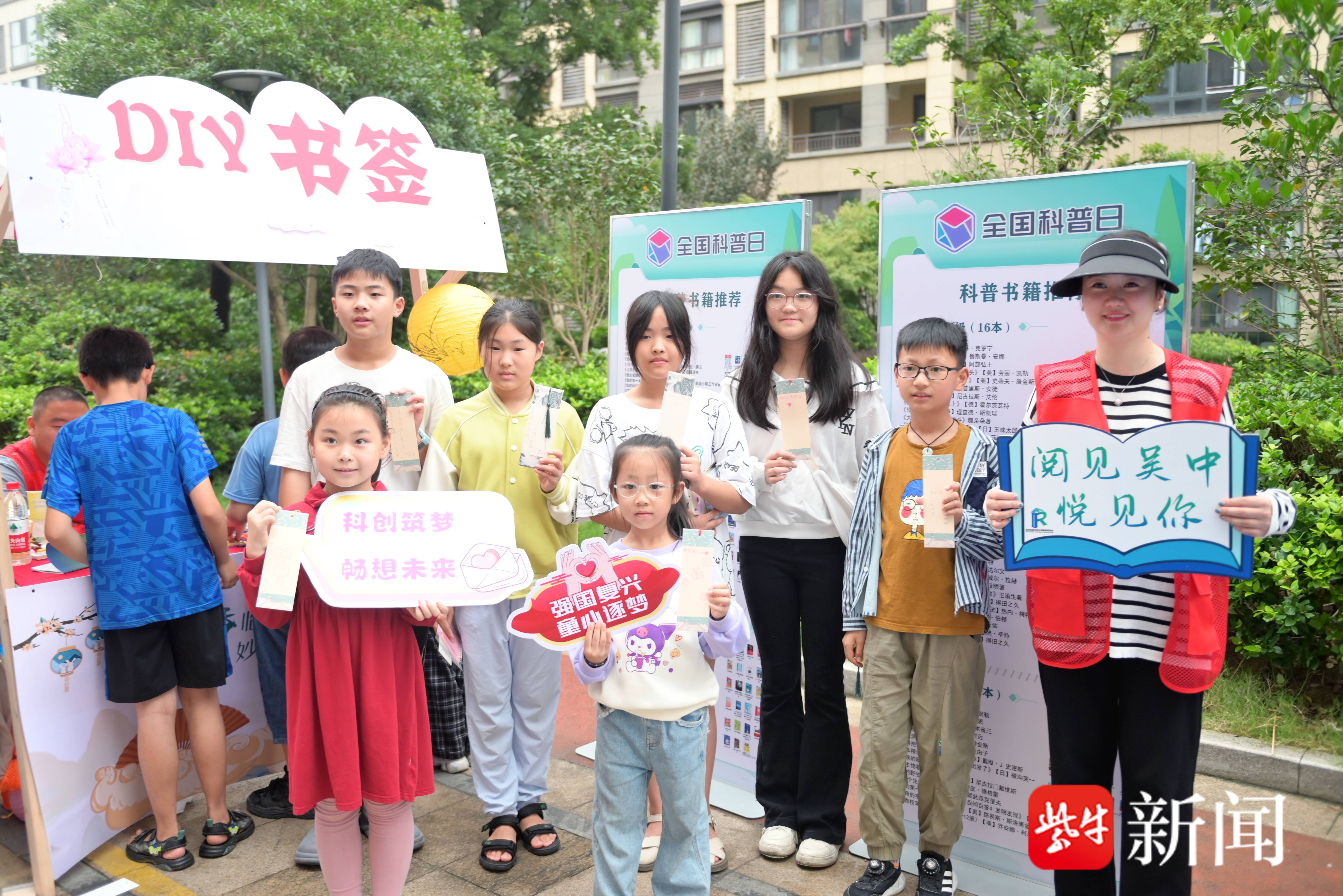 手工制作,一起“阅见青春”。制作中秋灯笼的摊位前排着长长的队伍,领到制作材料的孩子和家长们围在桌前、坐在小帐篷前,一同动手制作中秋灯笼,为即将到来的中秋节营造了浓厚氛围。创意书签摊位前,孩子们认真写下了“全国科普日”、小小心愿、想说的话等等内容,制作出了一张张独属于自己的书签,感受手工制作快乐的同时,也了解了全国科普日的知识。