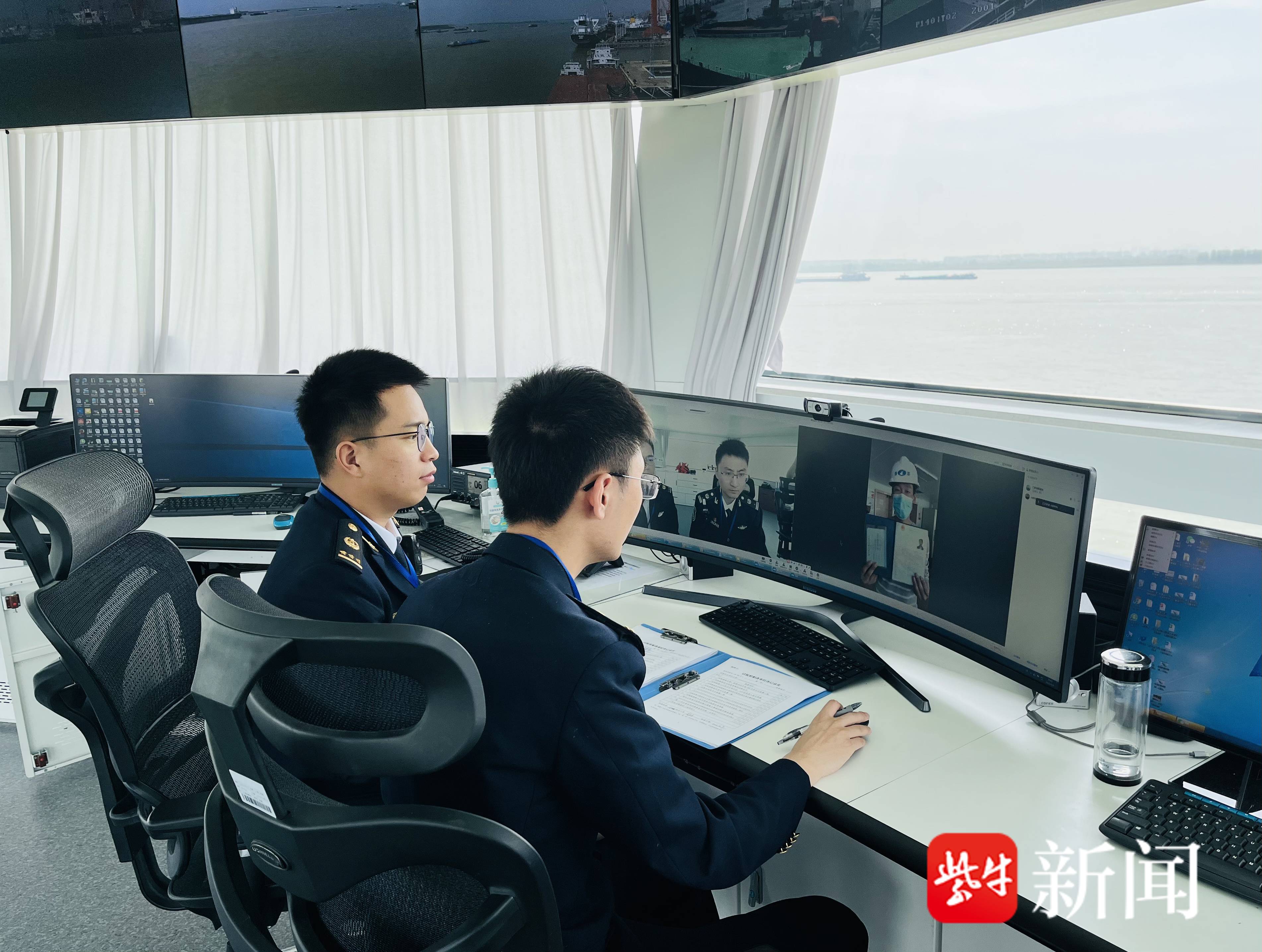 在嘶马塔台正在工作的江都海事工作人员